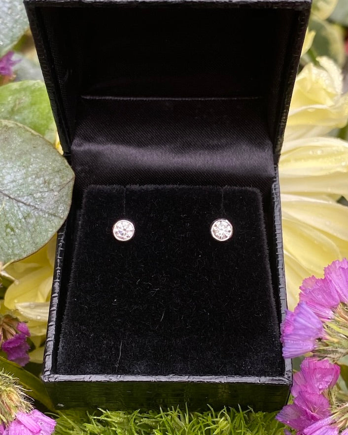 A classic pair of Diamond Stud Earrings, set in a Rubover White Gold setting, showing off the dazzling Diamonds in all their glory! The Brilliant Cut Diamonds are bright and clean, H/I colour, VS/SI clarity and an impressive 0.50ct in total! The earrings have butterfly back fastenings. A must have for any jewellery lover! Classic, and timeless.
