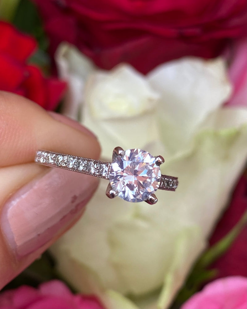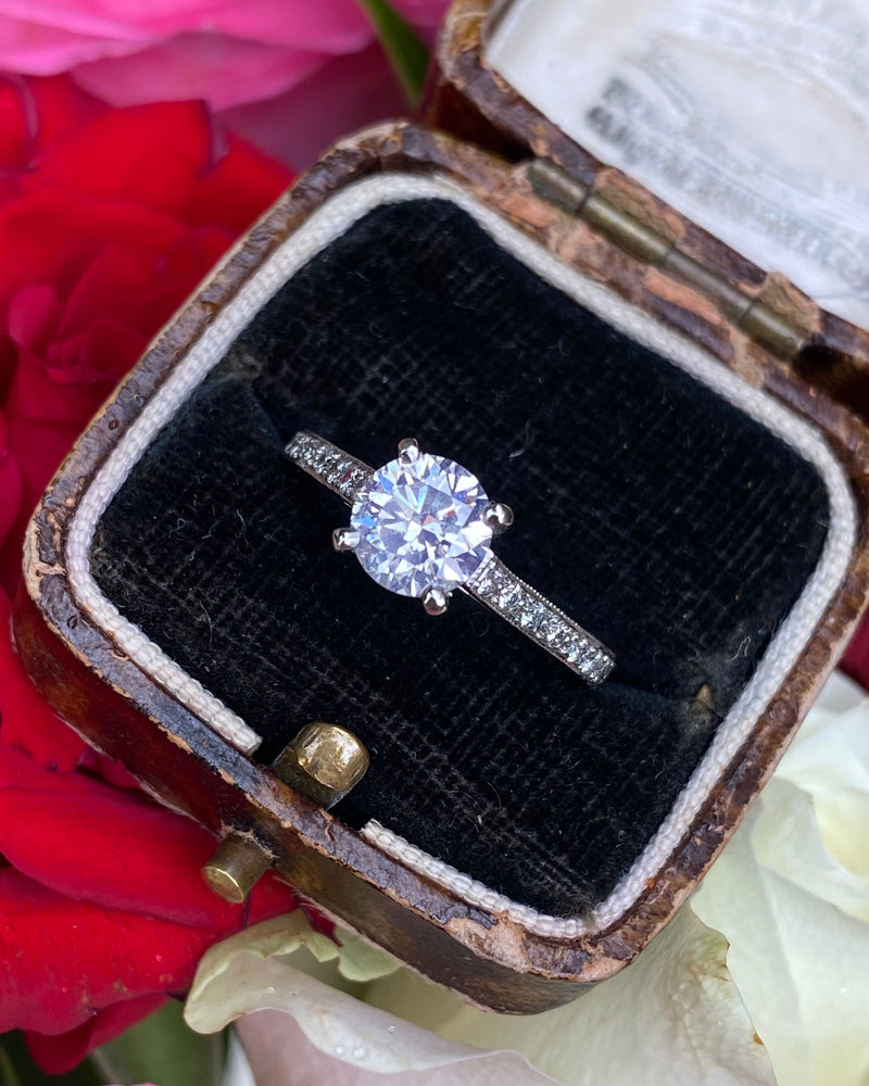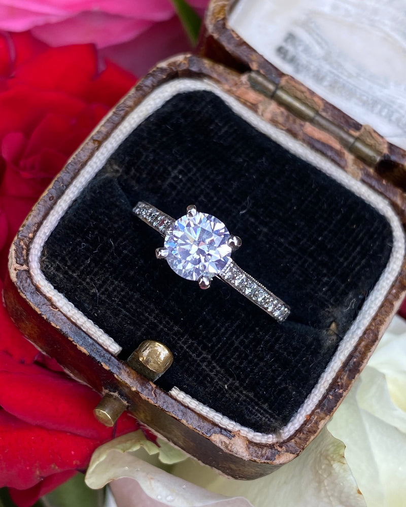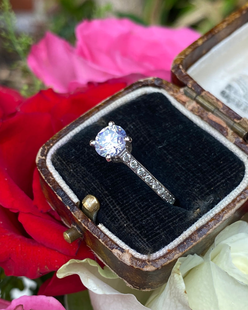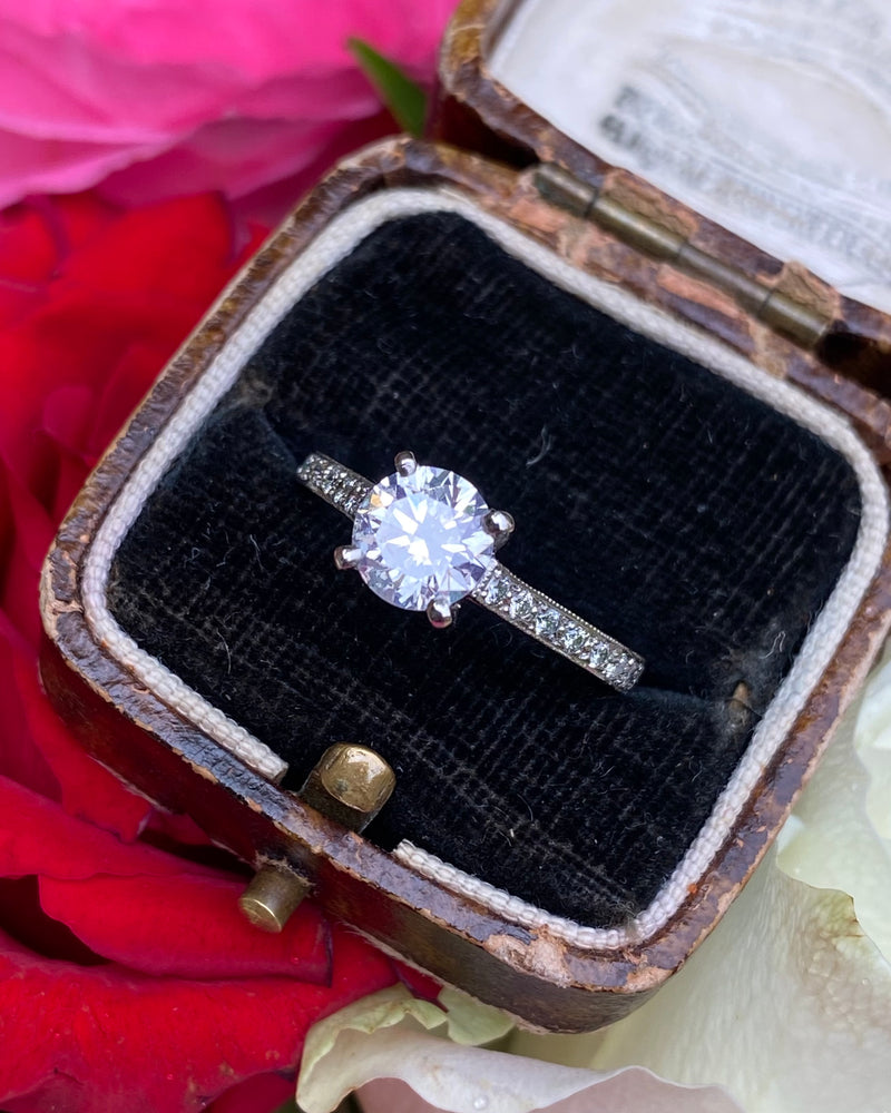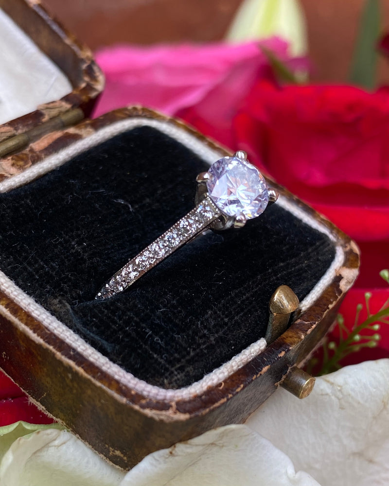 Gemstone Weight: 1.05ct Central Diamond + 0.25ct in the shoulders of the ring
