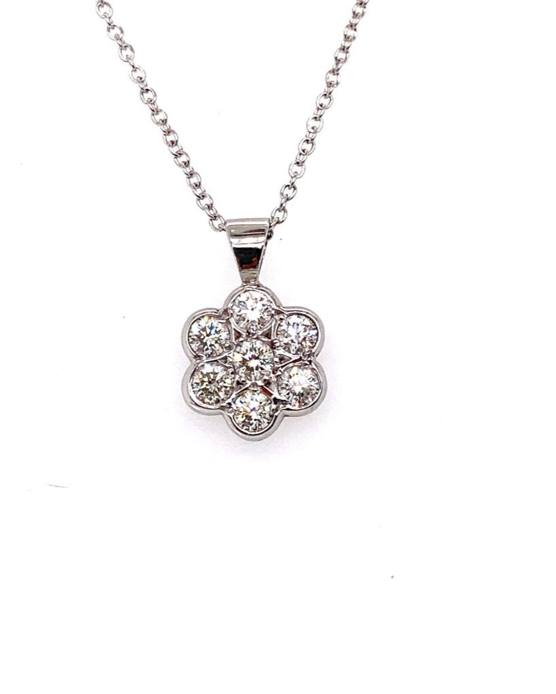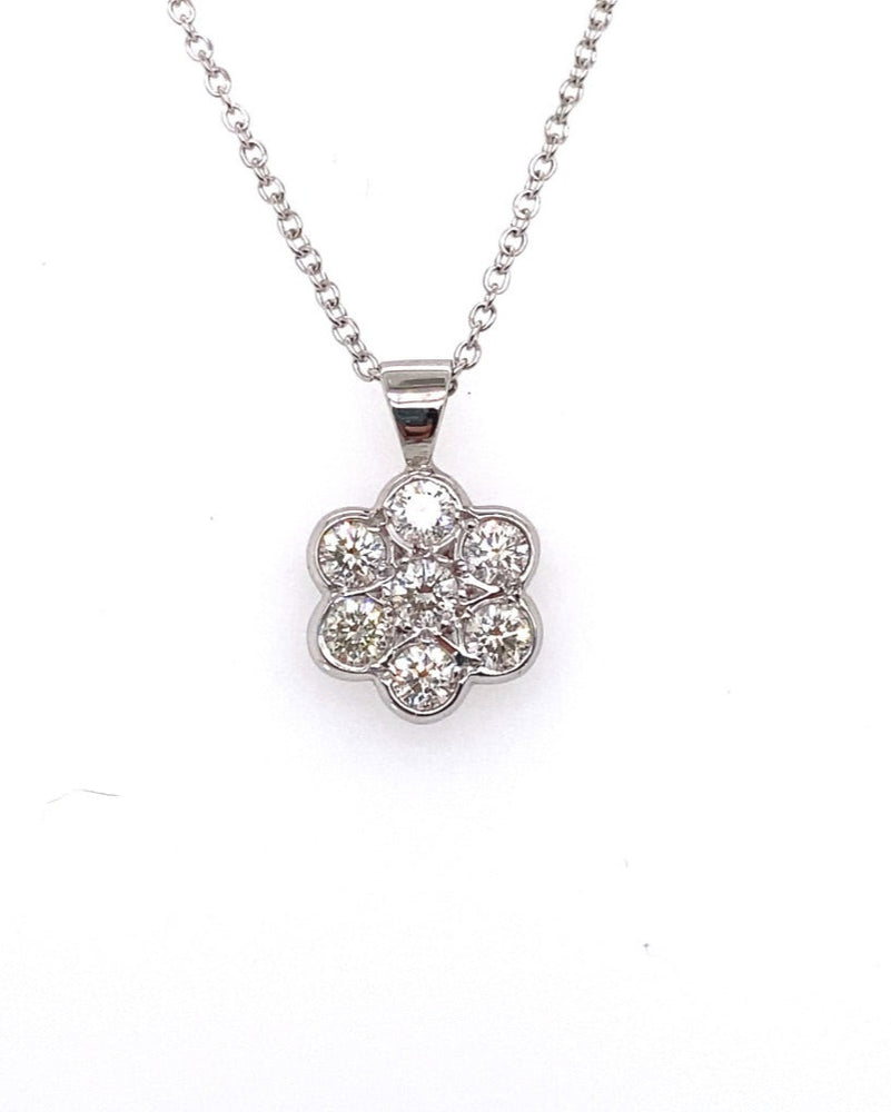 18ct White Gold Daisy Cluster Diamond Pendant 0.50ct
