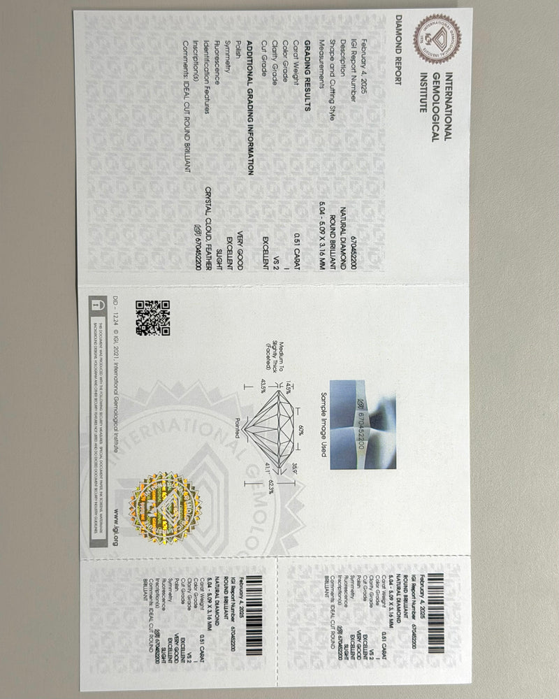 A fabulous Diamond Solitaire Pendant set in 18ct White Gold. The central Diamond is Round Brilliant Cut, and is IGI certified, weighing 0.51ct, measures 5.04 × 5.09 x 3.16 mm and is of a lovely 'I' colour and 'VS2' clarity. This gorgeous stone is set in a fine claw setting, complimented by a further three Round Brilliant Cut Diamonds set in the bail, slightly graduating in size and weighing, 0.09ct, making the total Diamond weight in the pendant 0.60ct. The pendant is set in 18ct White Gold and measures 12mm by 5mm wide from the top of the bail. The chain measures 16.5 inches from each end of the clasp and is also 18ct White Gold. This is a beautiful quality pendant suitable for a special occasion or every day.