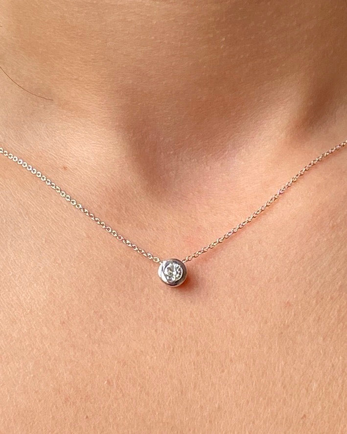 18ct White Gold Diamond Solitaire Rubover Set Pendant 0.24ct