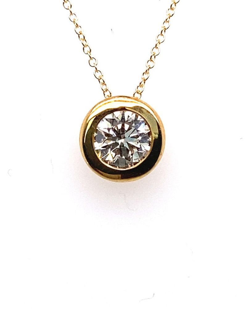 18ct Yellow Gold Diamond Solitaire Rubover Set Pendant 1.20ct