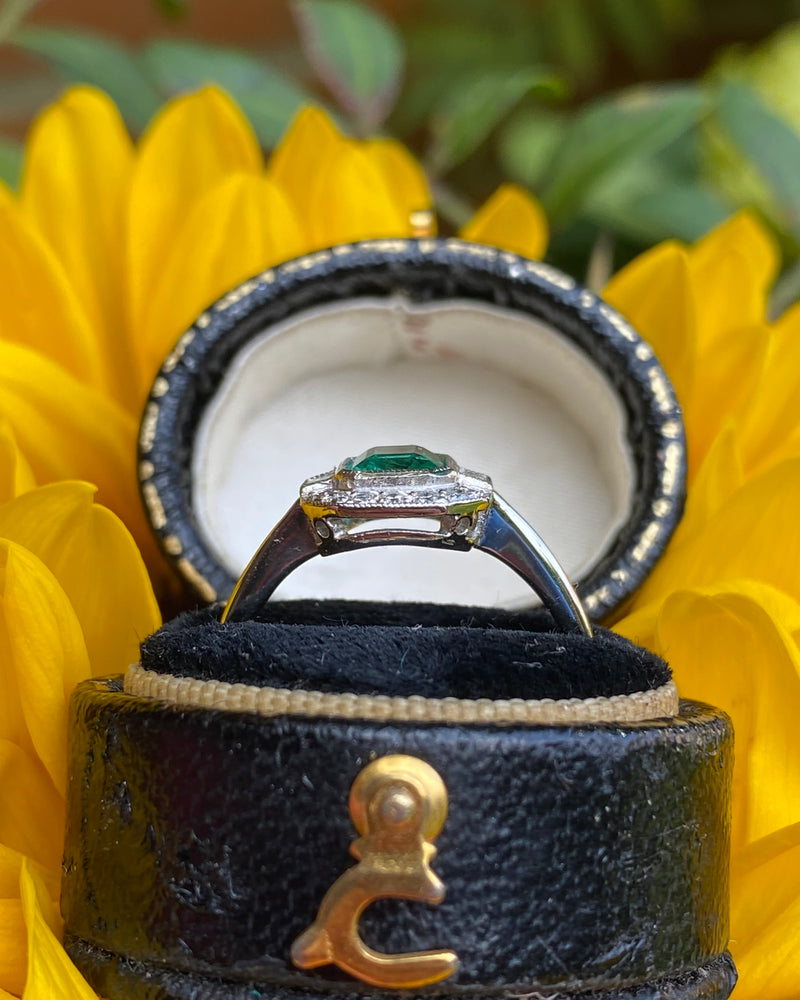 Art Deco Emerald and Diamond Platinum Ring 0.25ct + 0.90ct