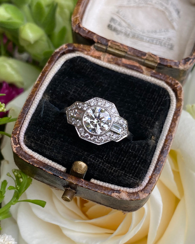 Art Deco Diamond Solitaire Platinum Cluster Ring 1.40ct