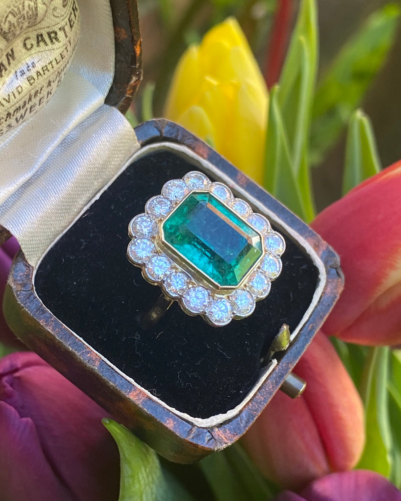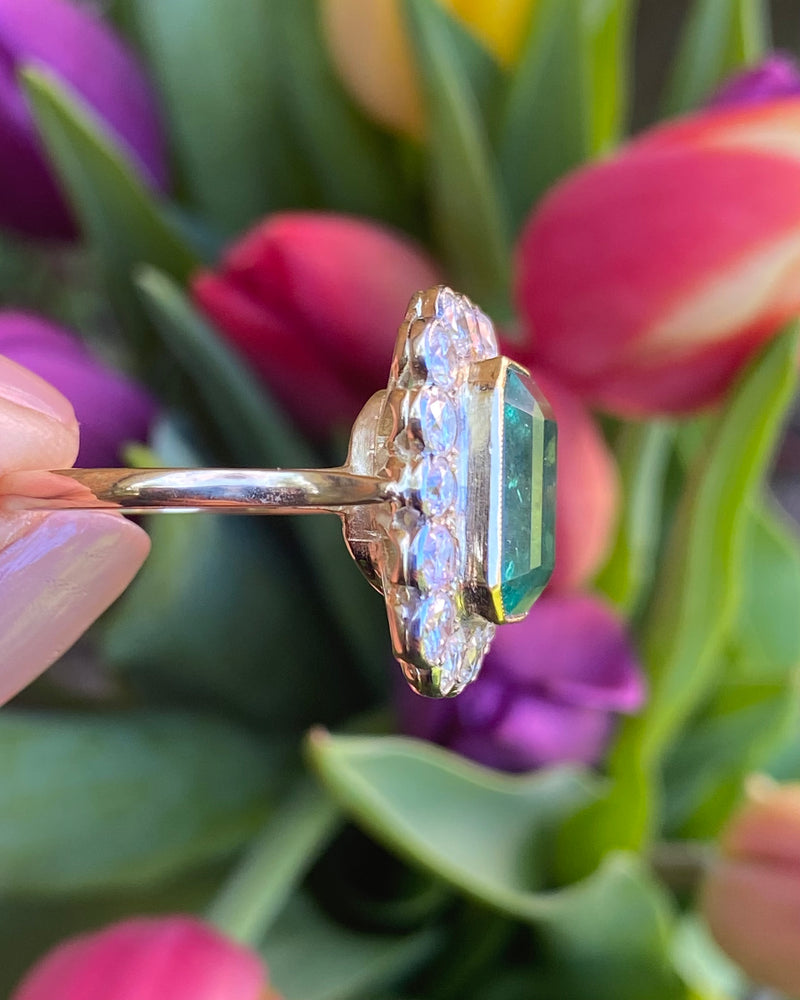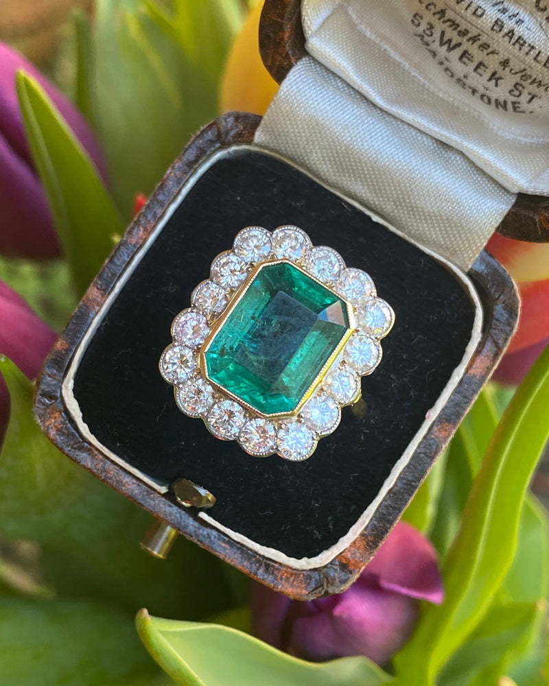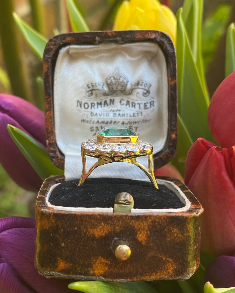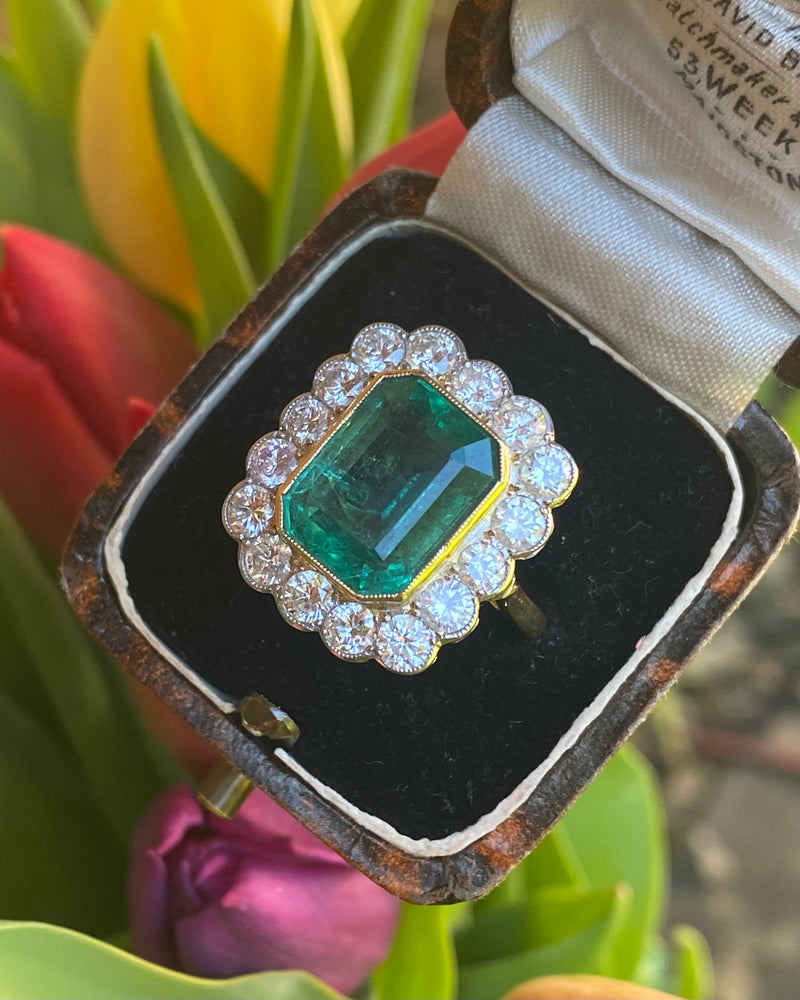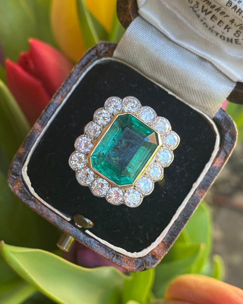 Victorian Emerald and Diamond Cluster Ring 18ct Yellow Gold 1.70ct + 4.95ct
