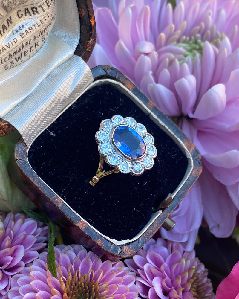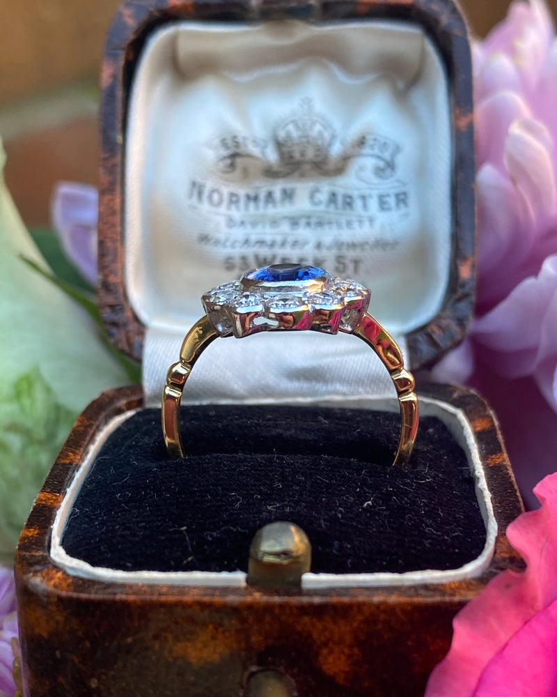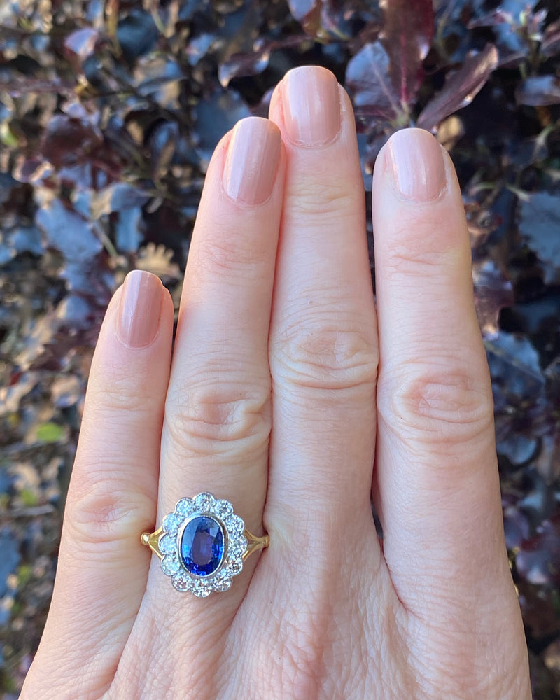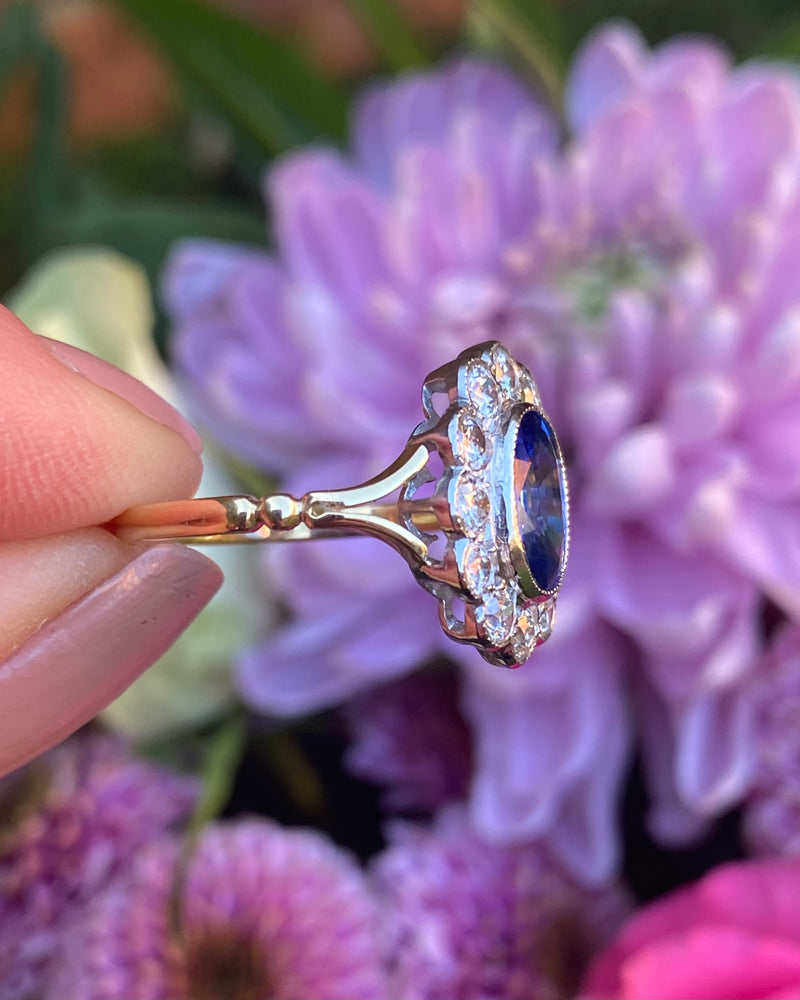 Victorian Sapphire and Diamond Cluster Ring 18ct Yellow Gold 0.85ct + 2.16ct