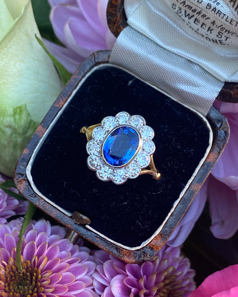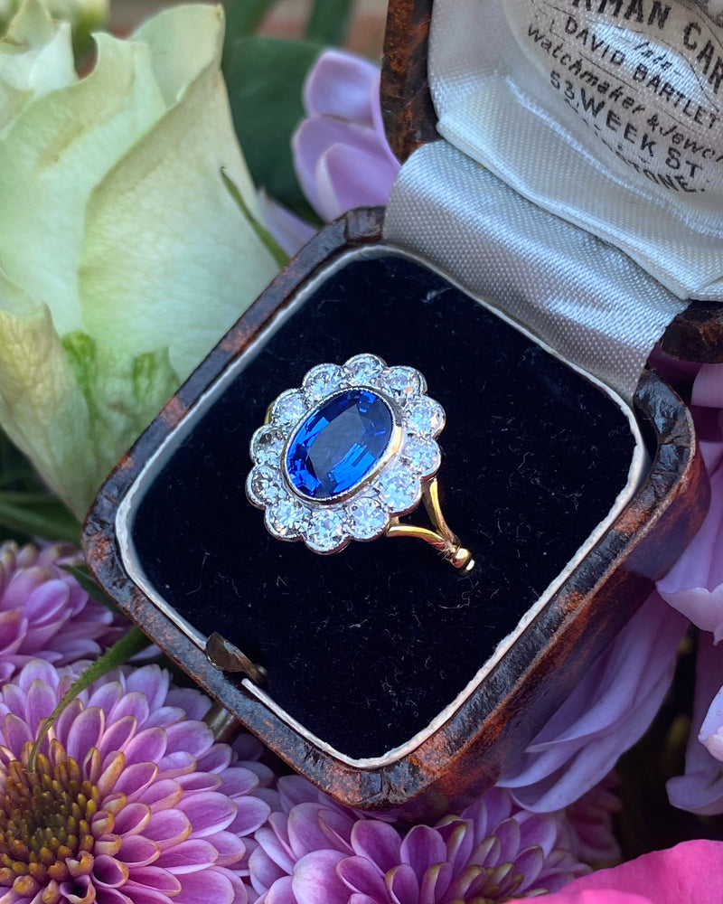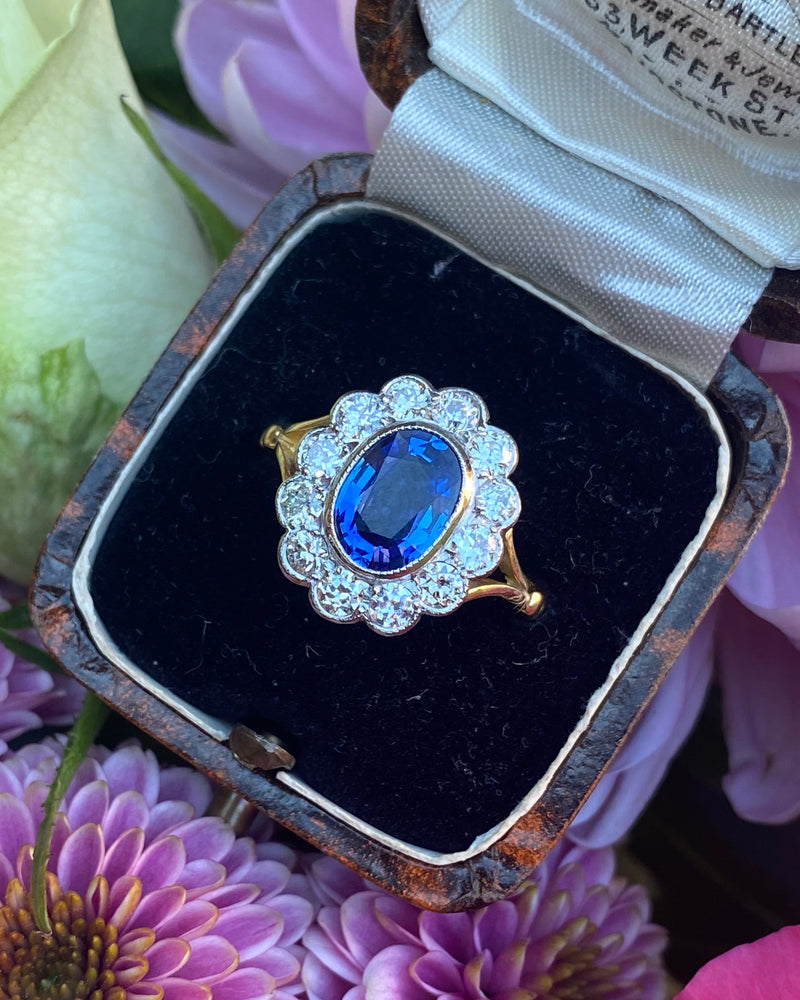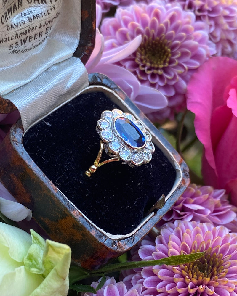 Victorian Sapphire and Diamond Cluster Ring 18ct Yellow Gold 0.85ct + 2.16ct