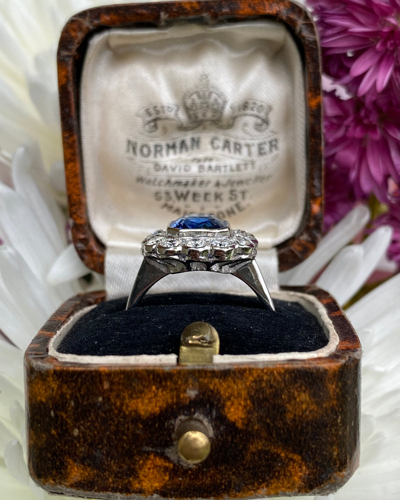 Sapphire and Diamond Cluster Platinum Ring 0.81ct + 2.07ct