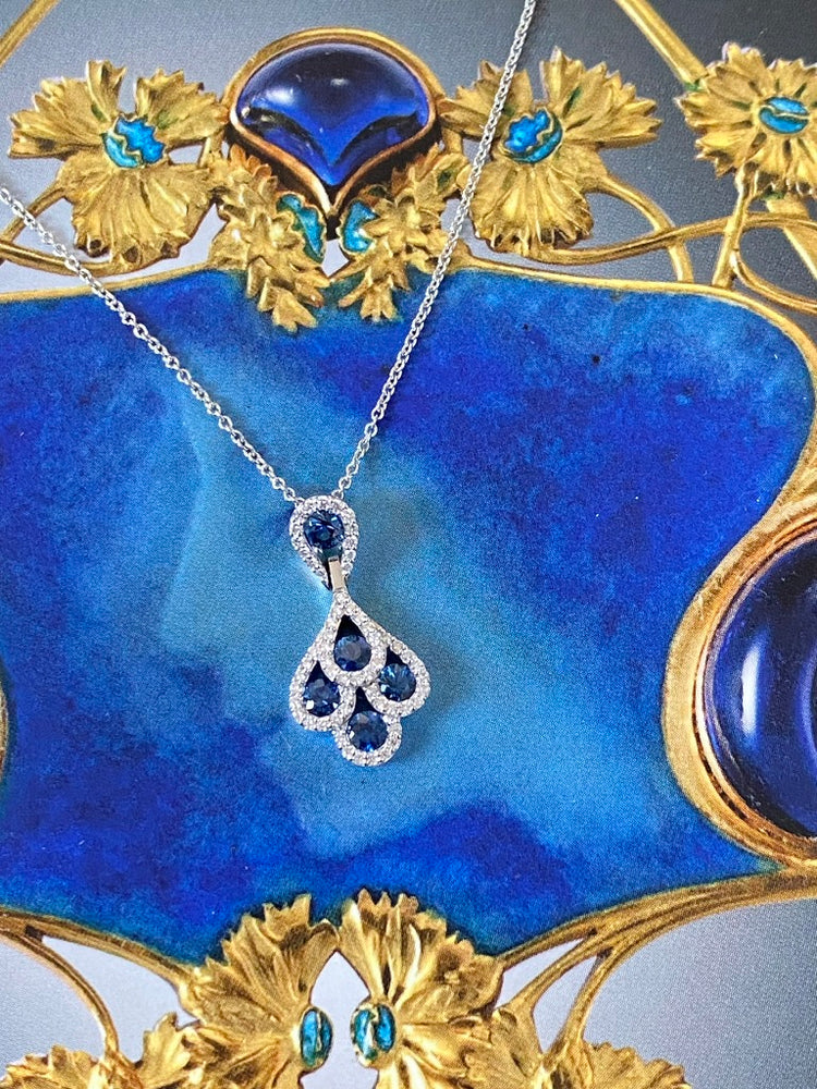 Contemporary Sapphire and Diamond Drop Pendant 18ct White Gold 0.14ct + 0.50ct