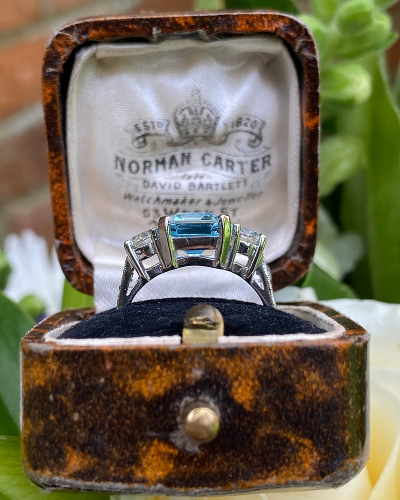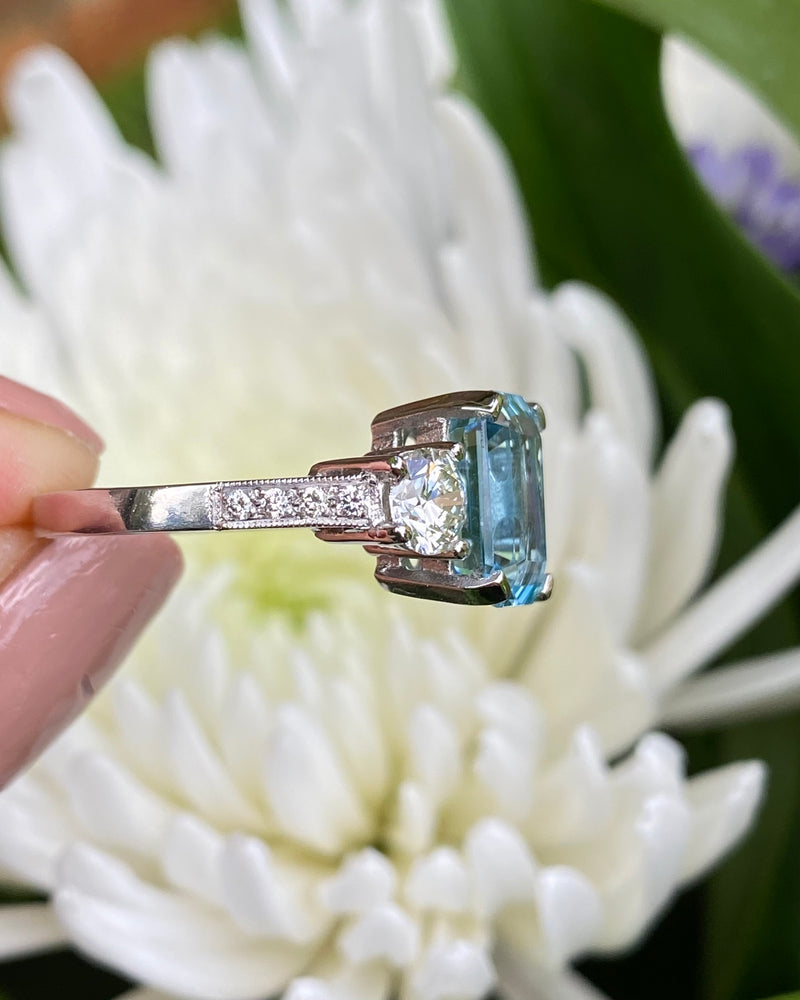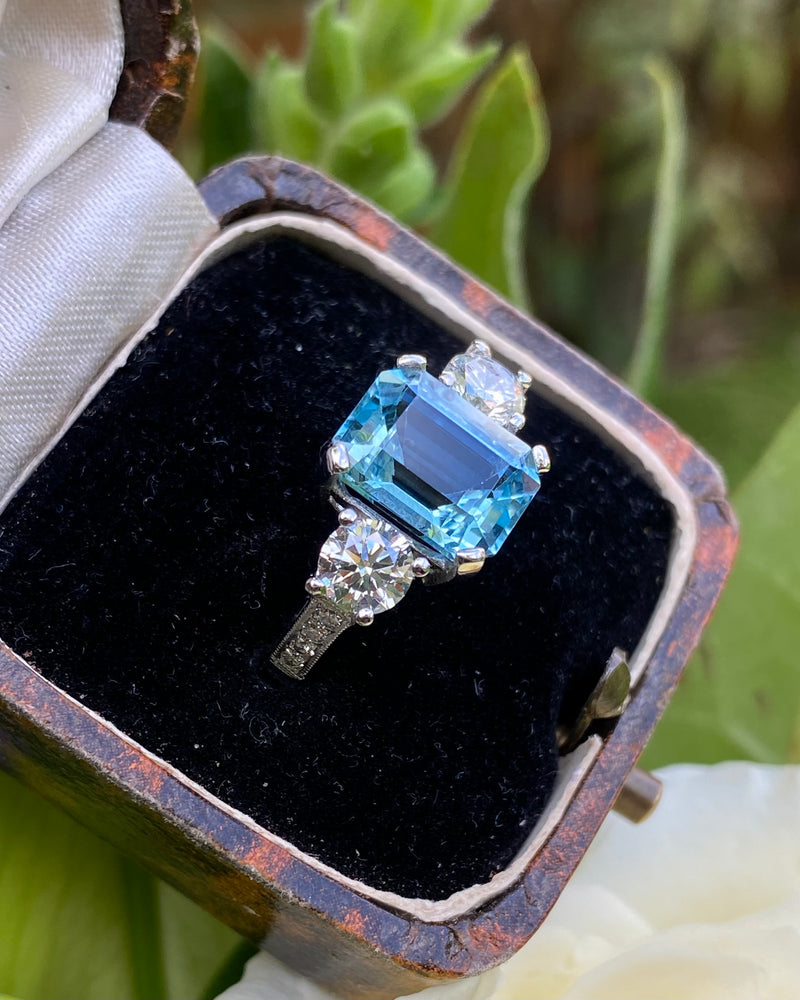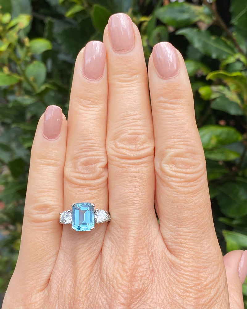 Aquamarine and Diamond Three Stone Platinum Ring 0.90ct + 2.90ct