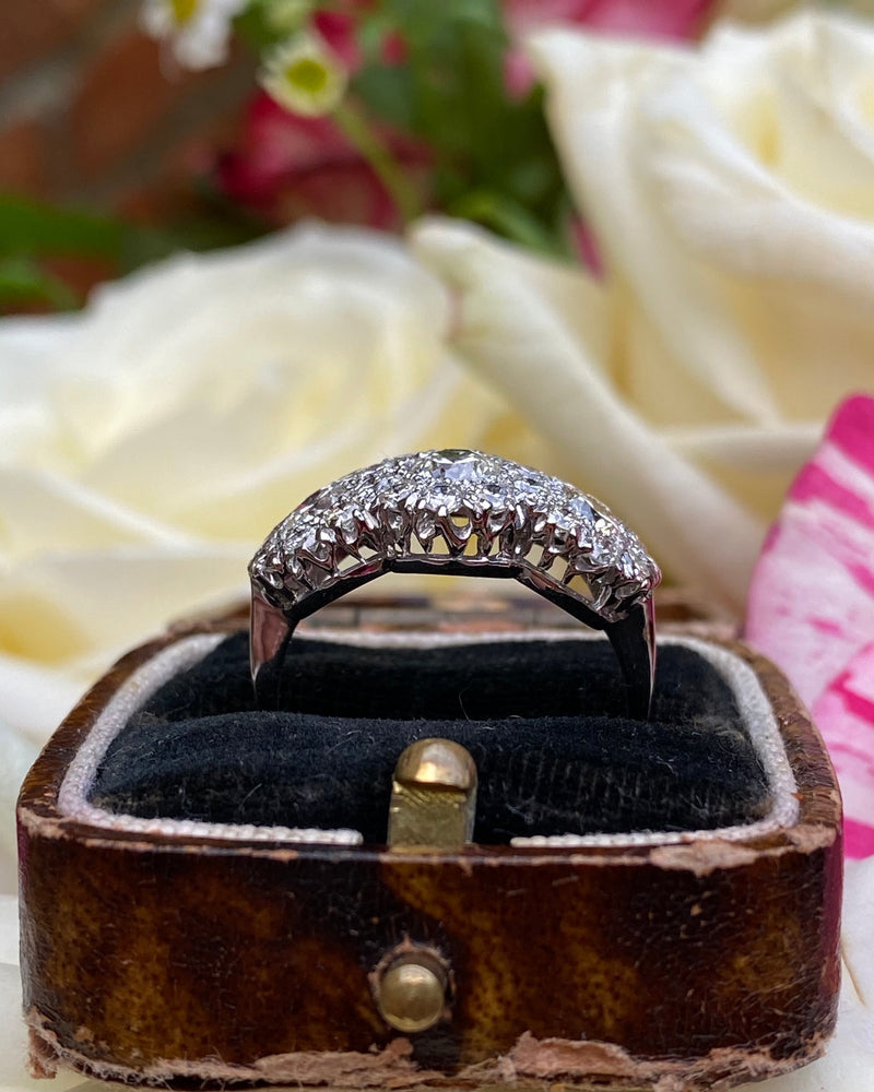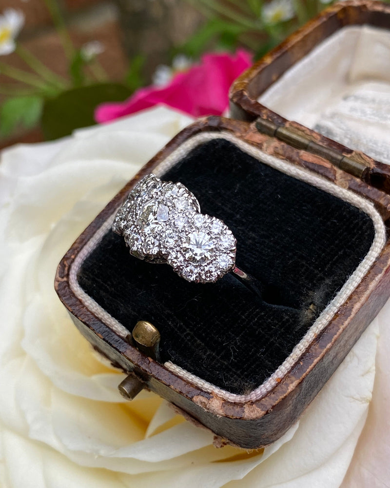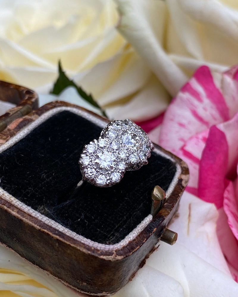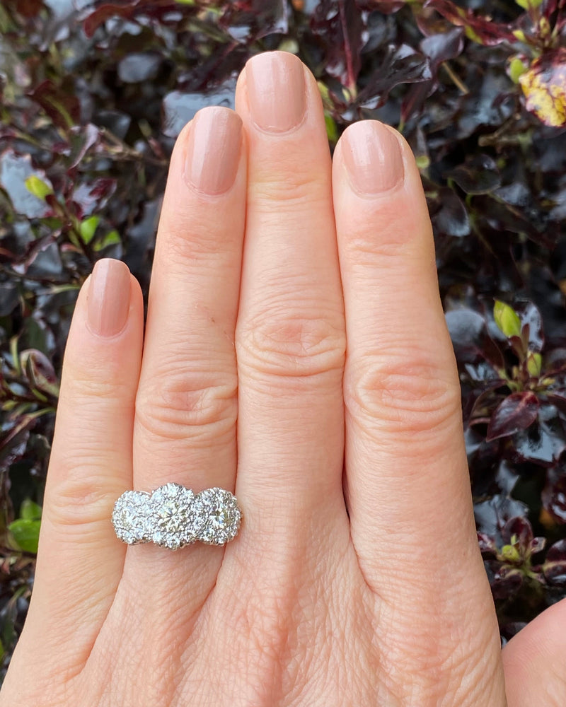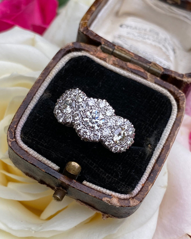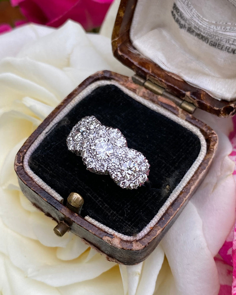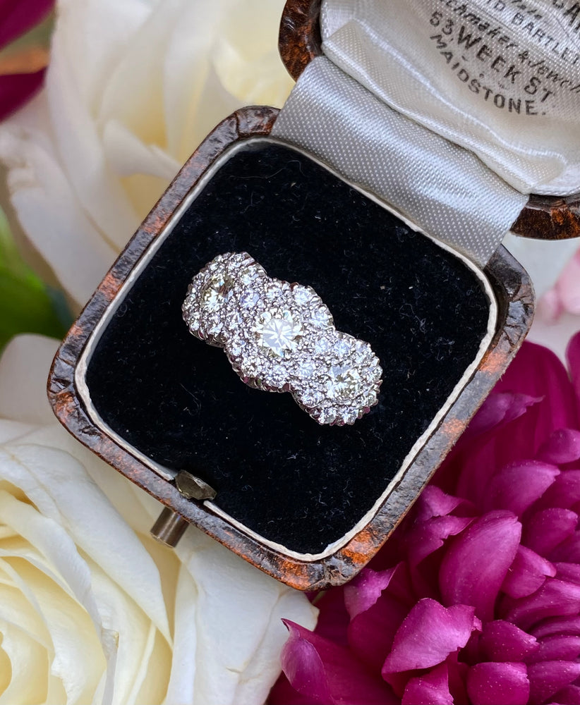 Victorian Style Diamond Triple Cluster Ring Platinum 1.90ct
