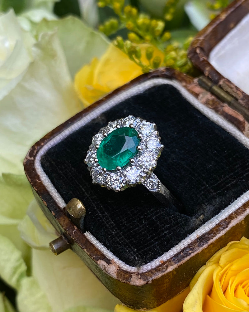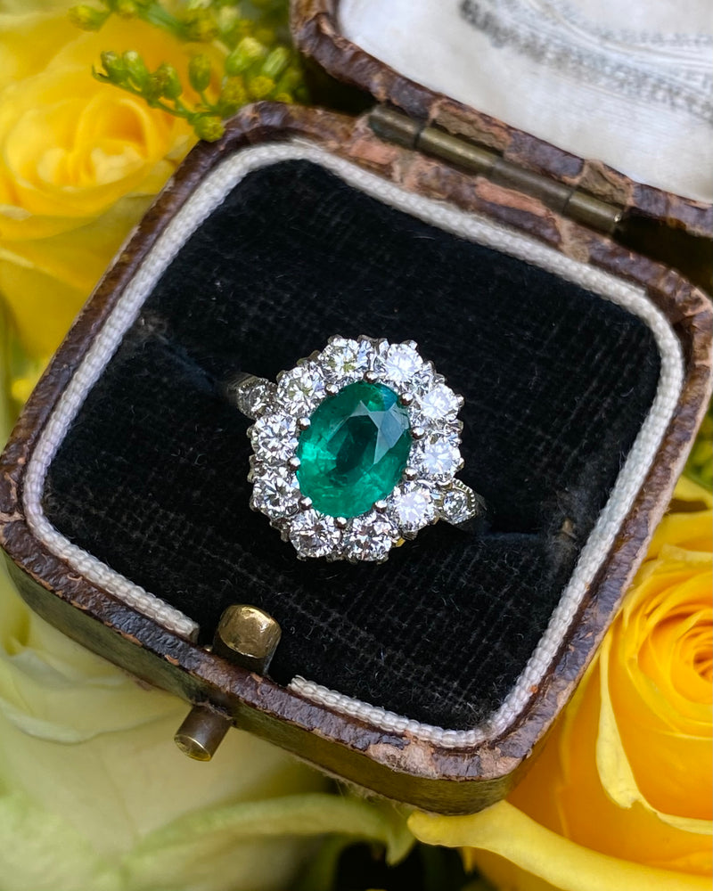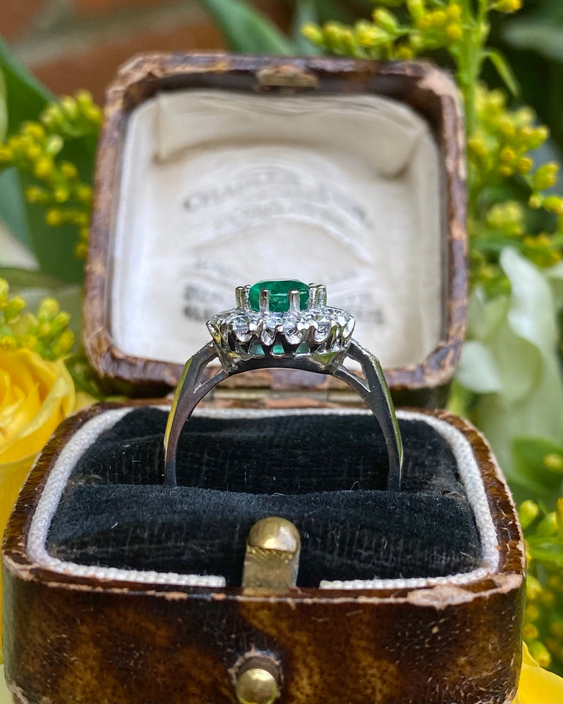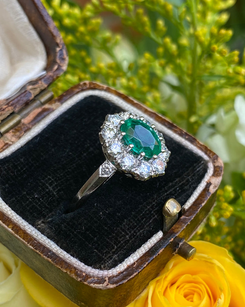 Victorian Emerald and Diamond Cluster Ring Platinum 0.95ct + 1.20ct
