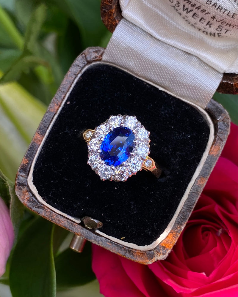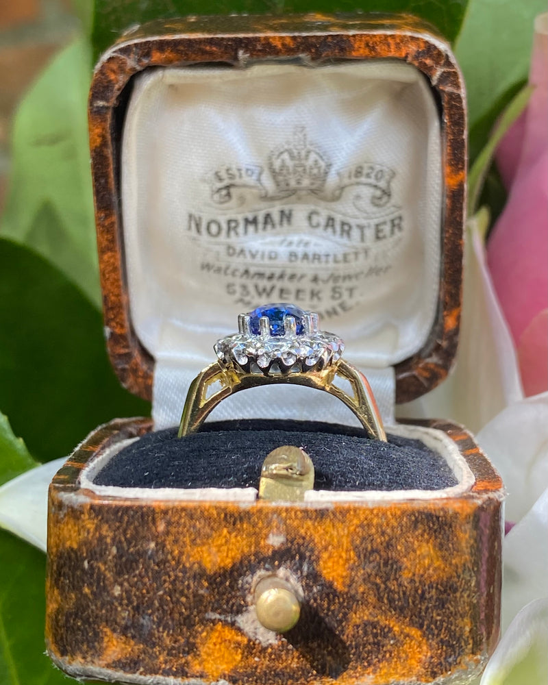 Victorian Sapphire and Diamond Cluster Ring 18ct Yellow Gold 1.0ct + 2.12ct