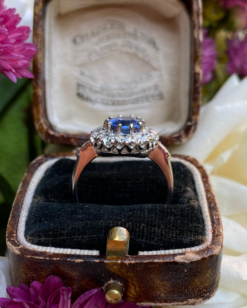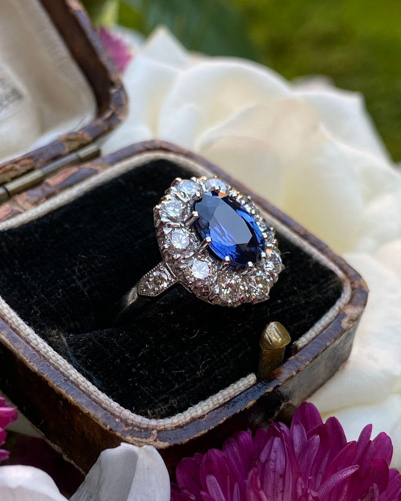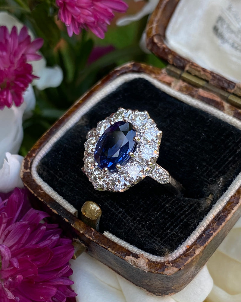 Victorian Sapphire and Diamond Cluster Platinum Ring 1.35ct + 2.20ct