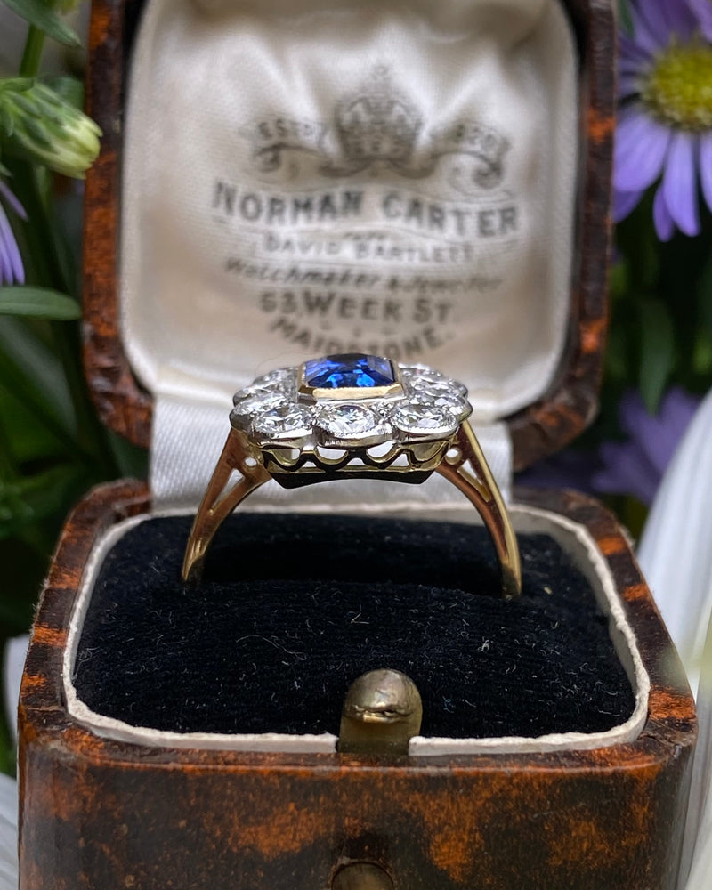 Vintage Sapphire and Diamond 18ct Yellow Gold Cluster Ring 1.60ct + 1.50ct