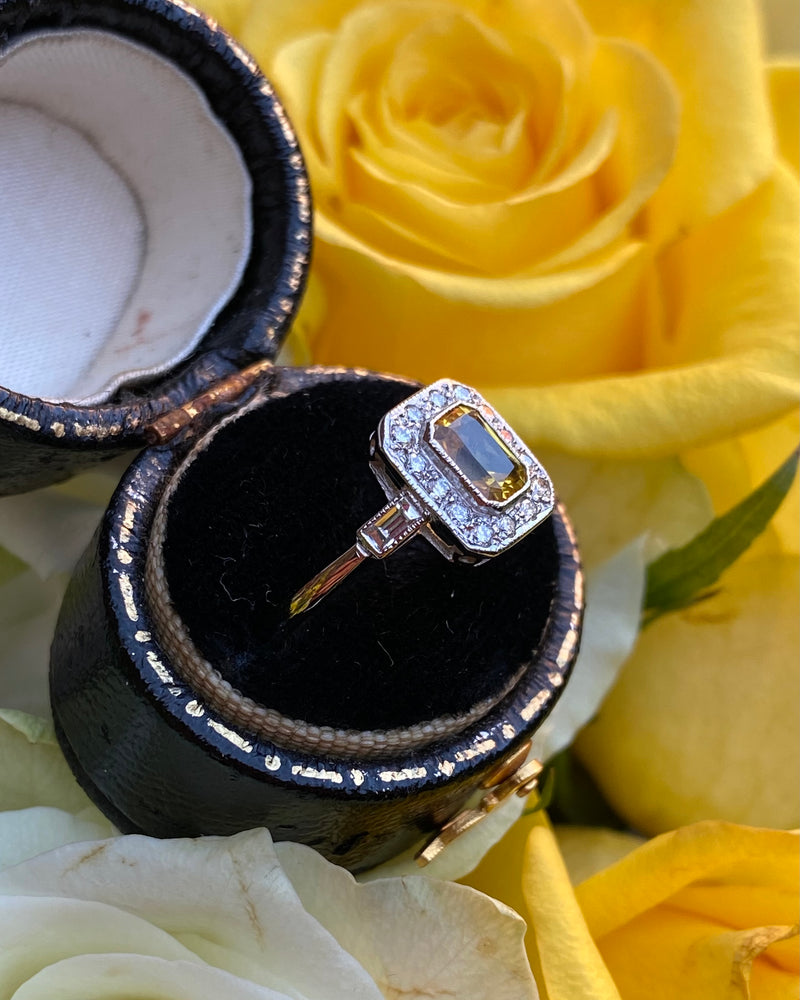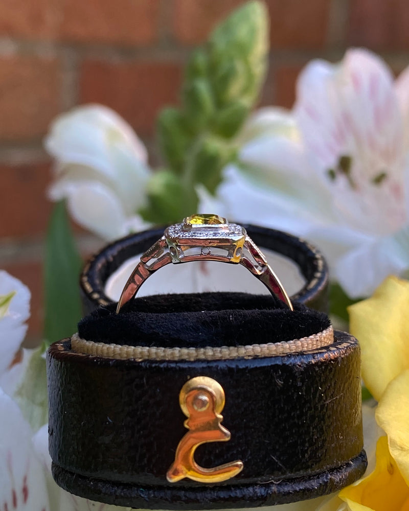 Art Deco Yellow Sapphire & Diamond Cluster Ring Platinum 0.25ct + 0.75ct