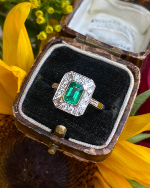 Many of the rings in our collection bring together contrasting colours and settings. Vintage style is created in the use of more thought provoking cluster shapes, eye-catching octagonal designs and finished to an impeccable standard with fine Millegrain setting edges.