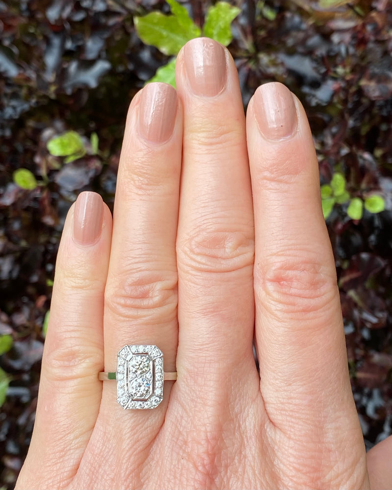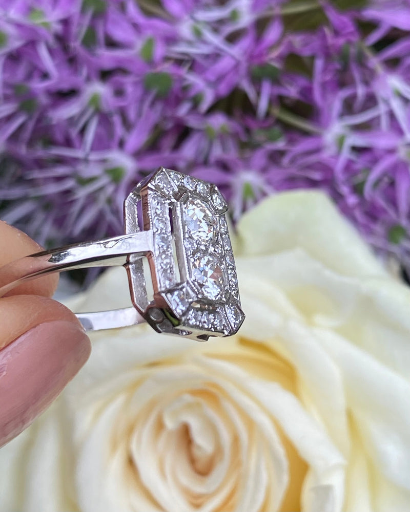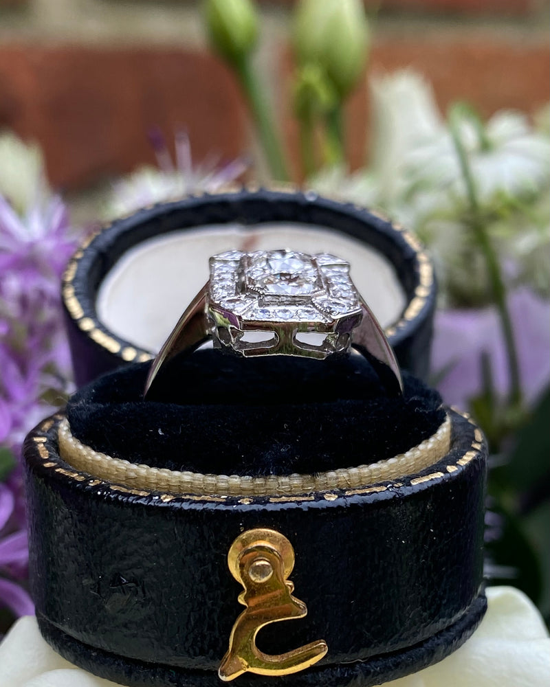 Art Deco Diamond Cluster Ring 0.85ct Platinum