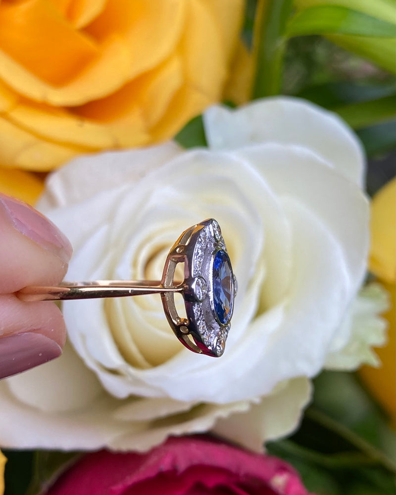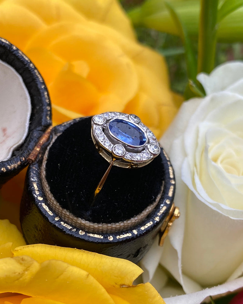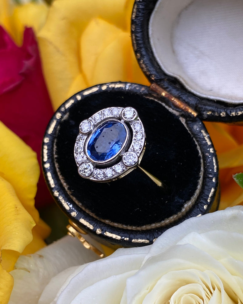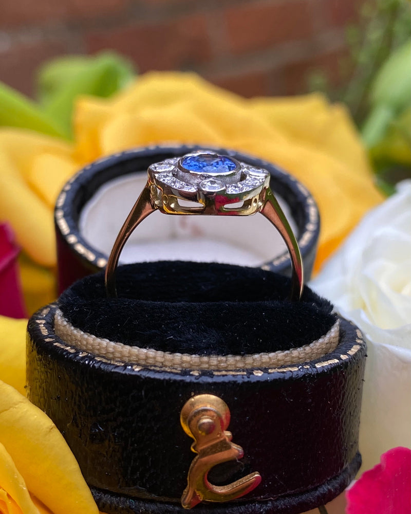 Art Deco Sapphire and Diamond Cluster Ring Platinum 0.35ct + 1.20ct
