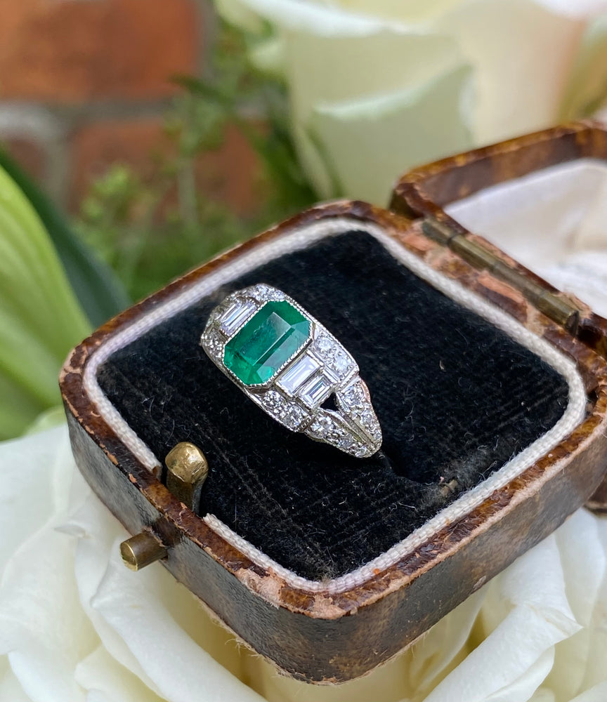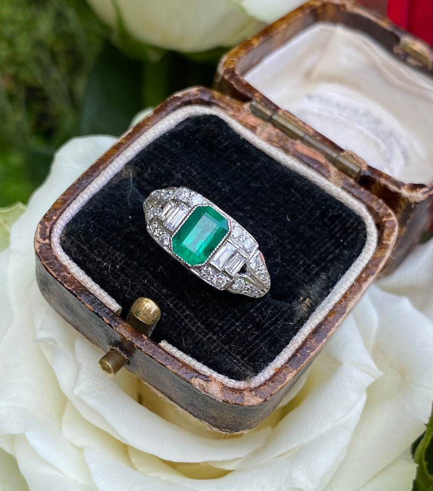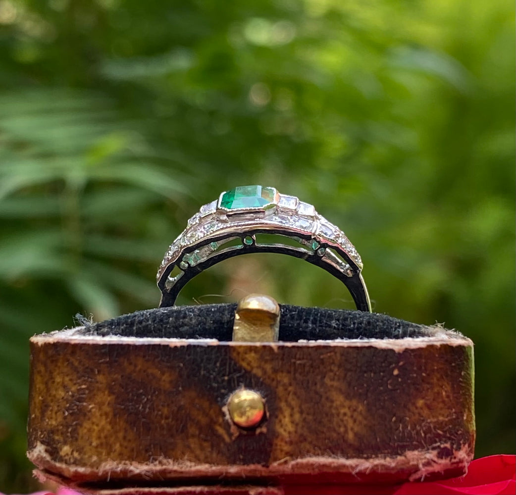 Art Deco Emerald and Diamond Platinum Ring 0.40ct + 0.90ct