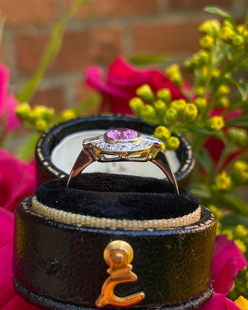 Art Deco Pink Sapphire and Diamond Cluster Ring Platinum 0.40ct + 0.80ct