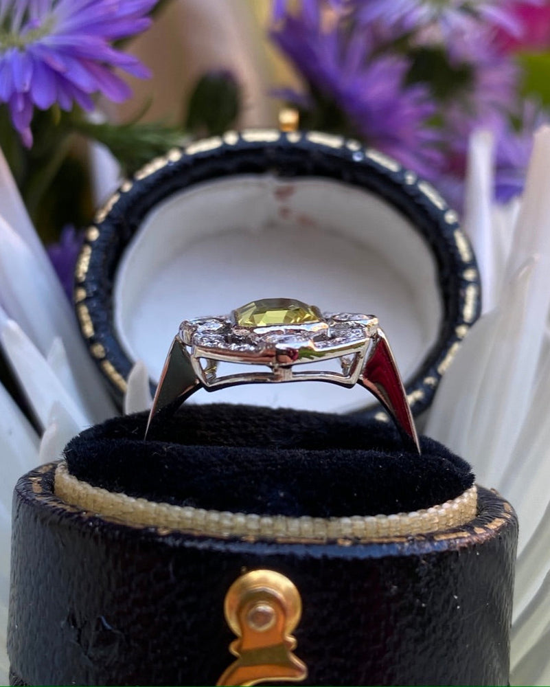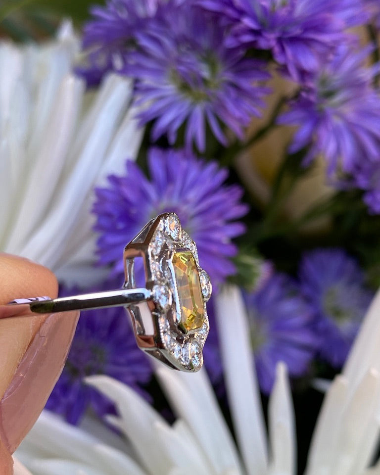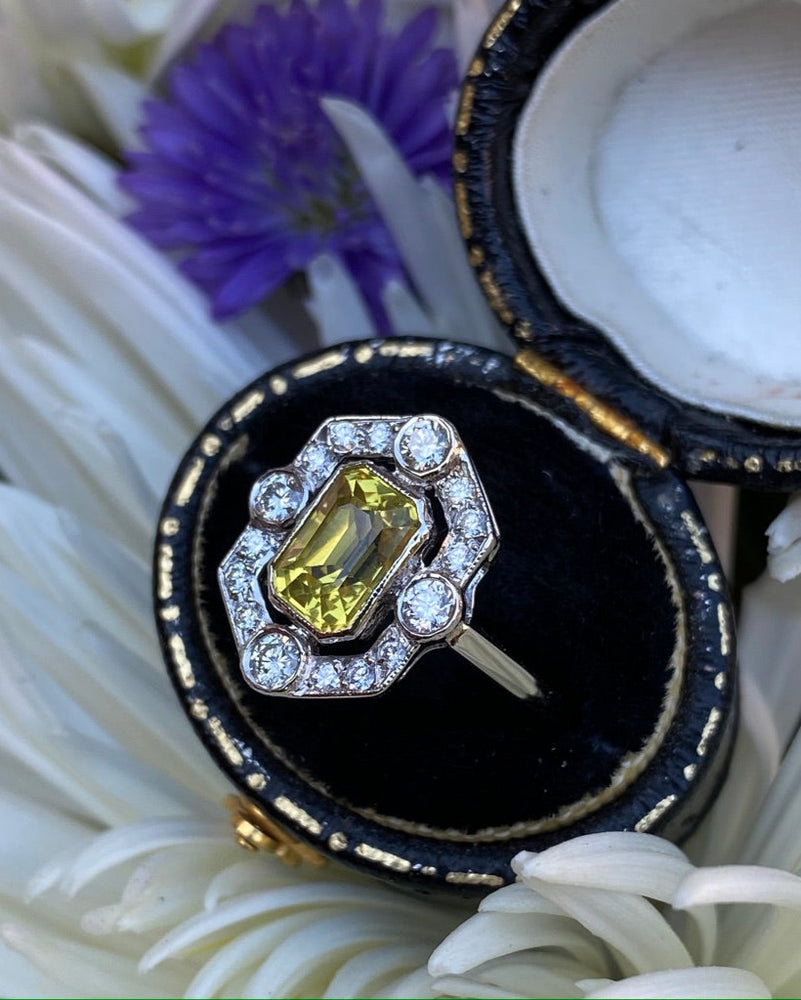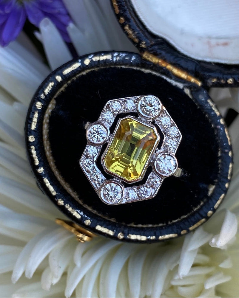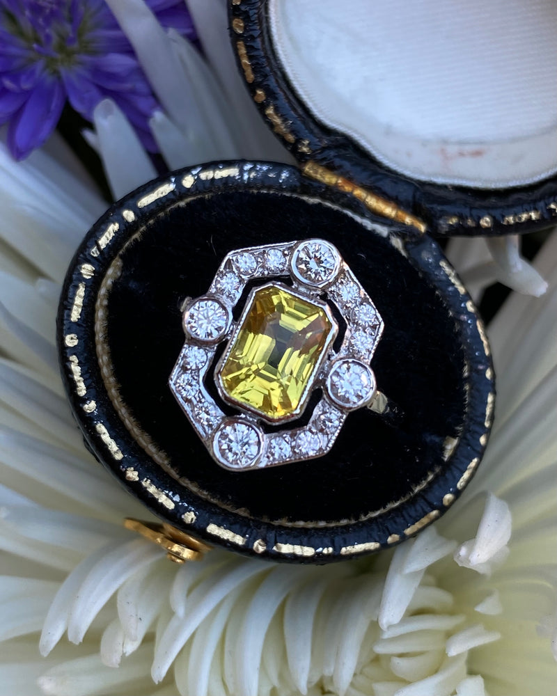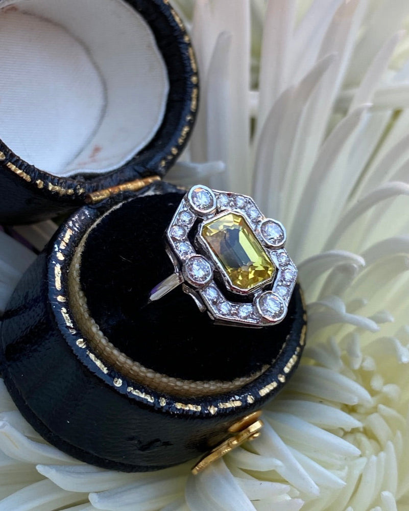 Art Deco Yellow Sapphire and Diamond Cluster Platinum Ring 0.50ct + 1.40ct