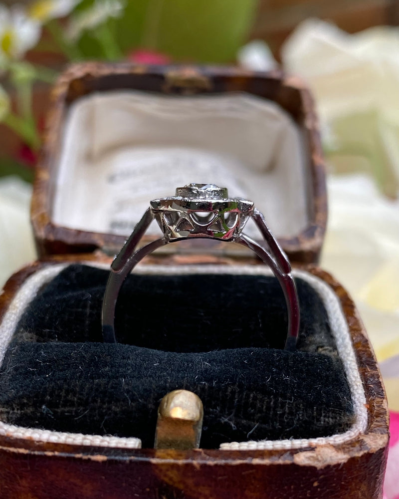 Art Deco Diamond Cluster Platinum Ring 1.35ct