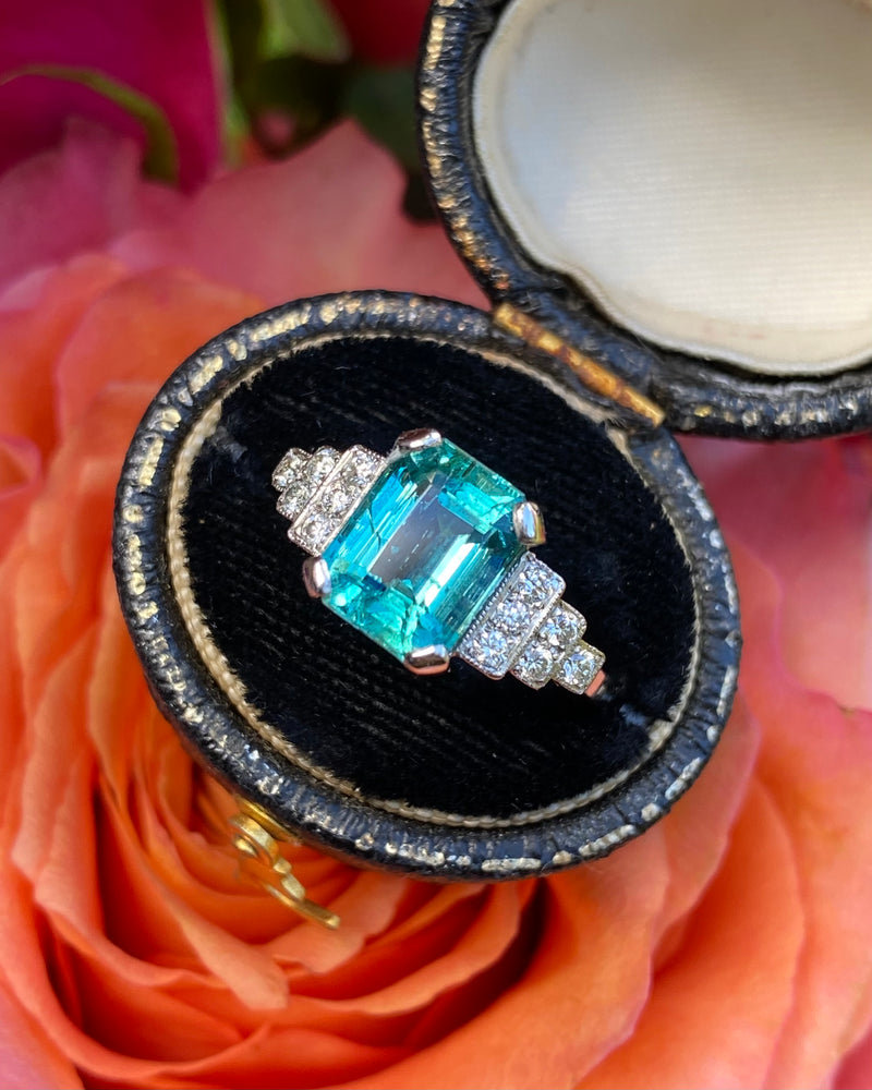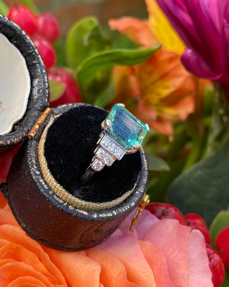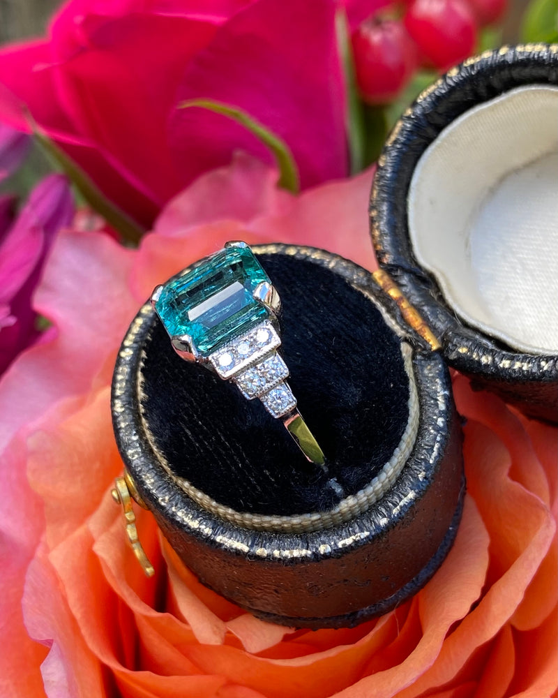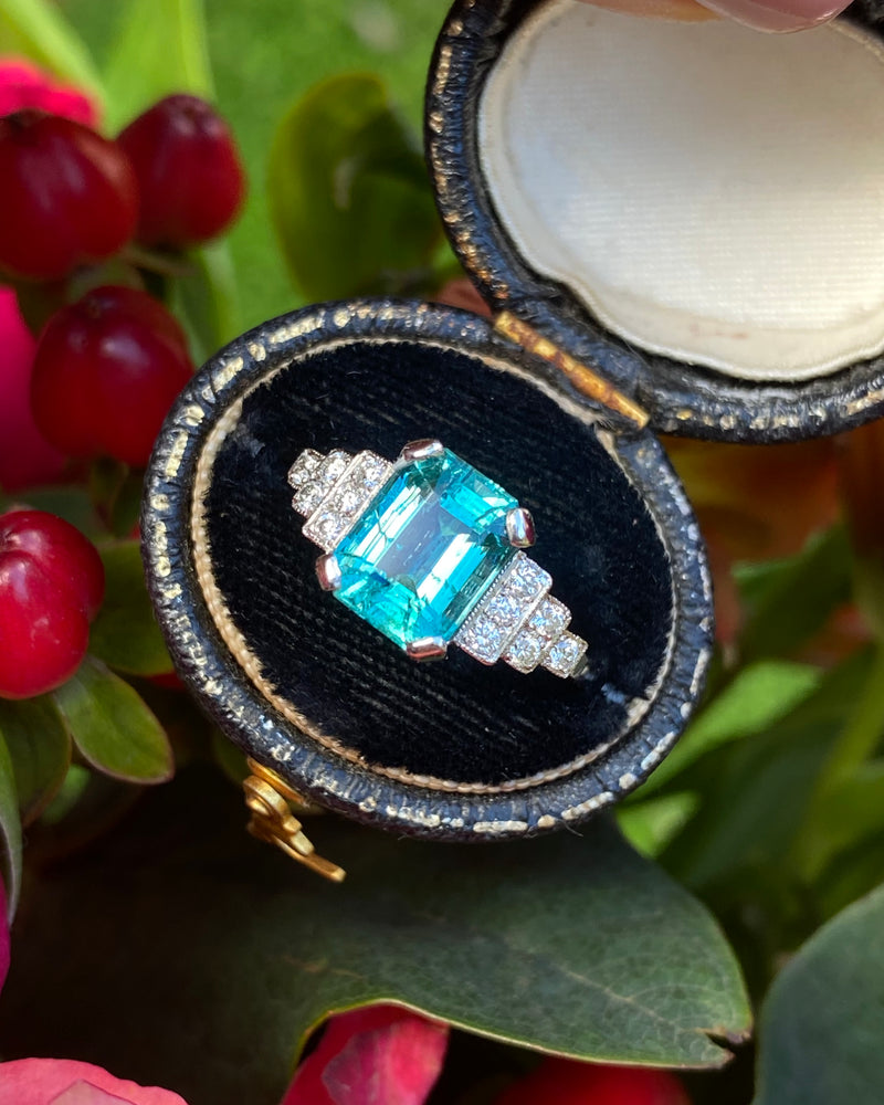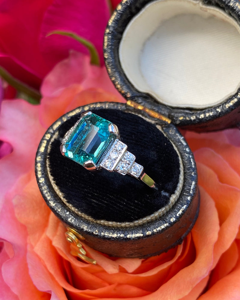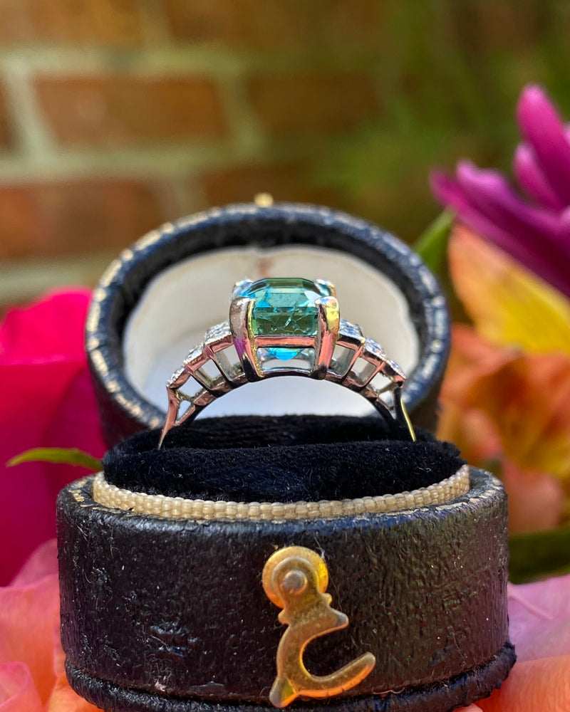 Art Deco Emerald and Diamond Platinum Ring 0.25ct + 2.50ct