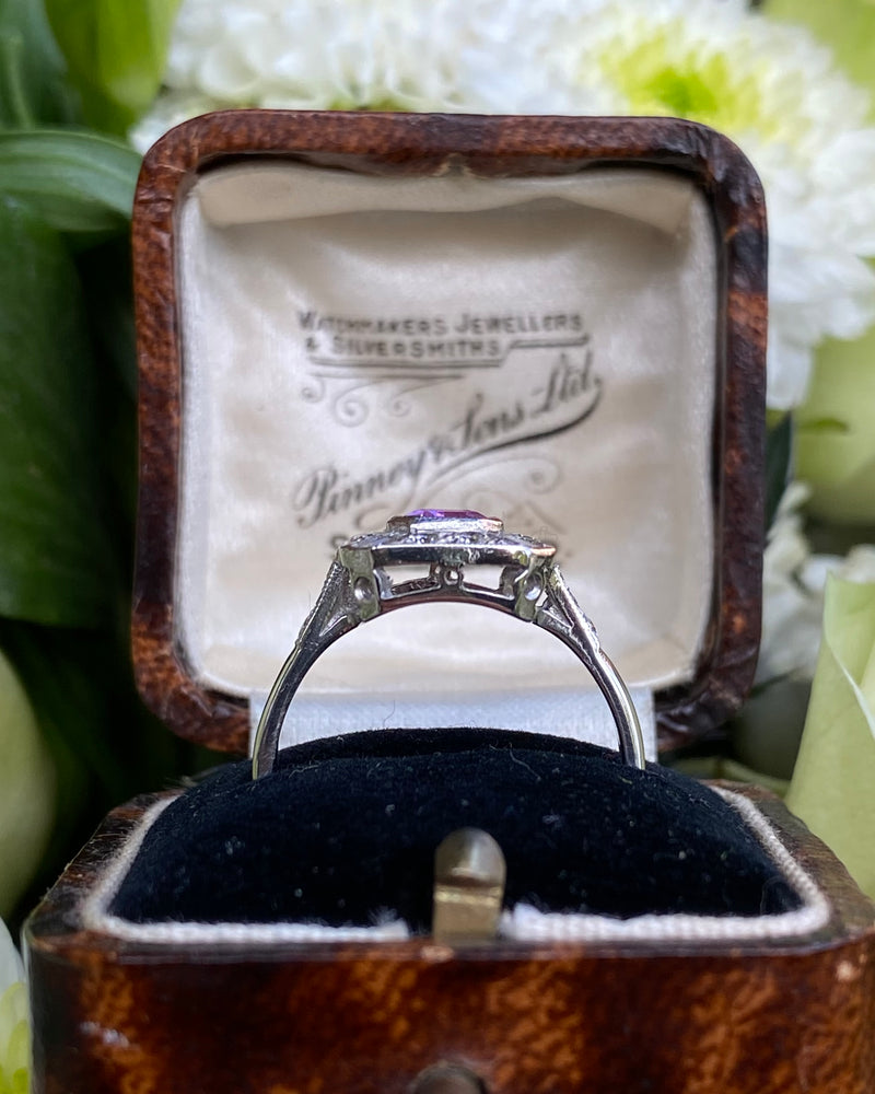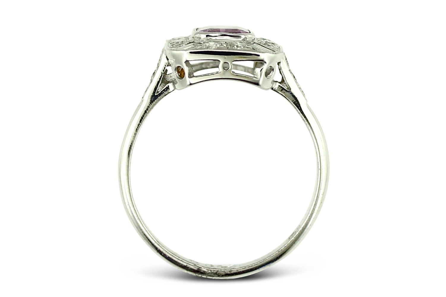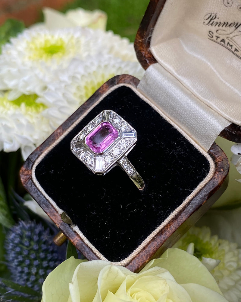 Art Deco Pink Sapphire and Diamond Ring Platinum 0.55ct + 1.05ct