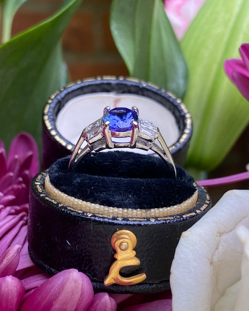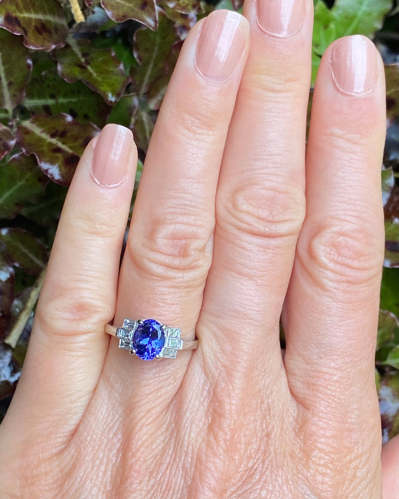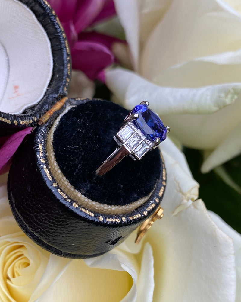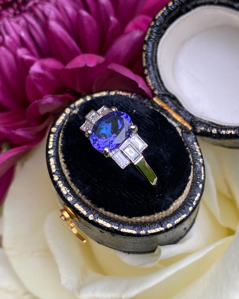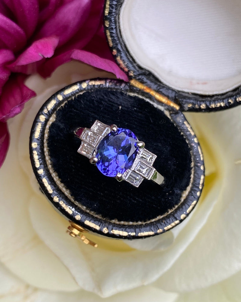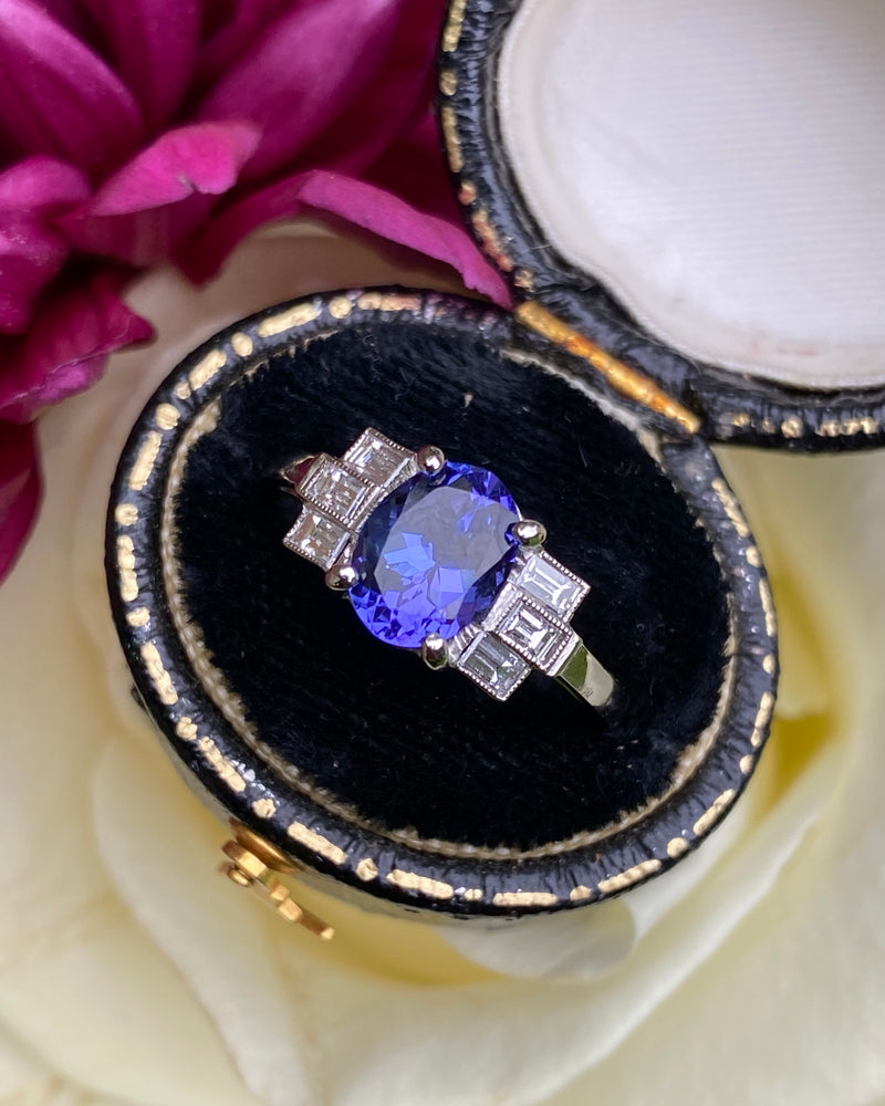 Art Deco Tanzanite and Diamond Platinum Ring 0.30ct + 1.70ct