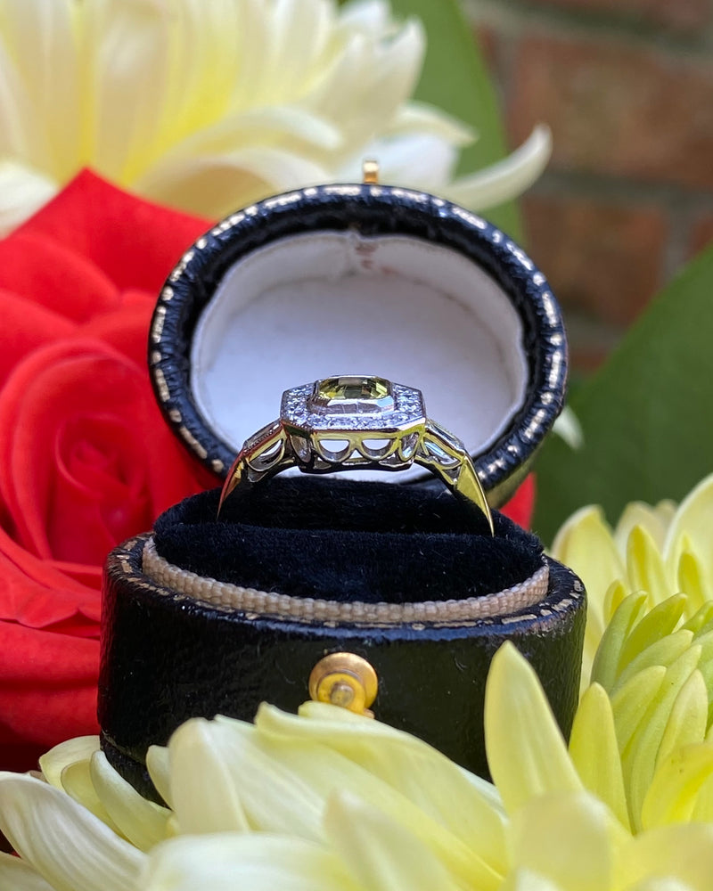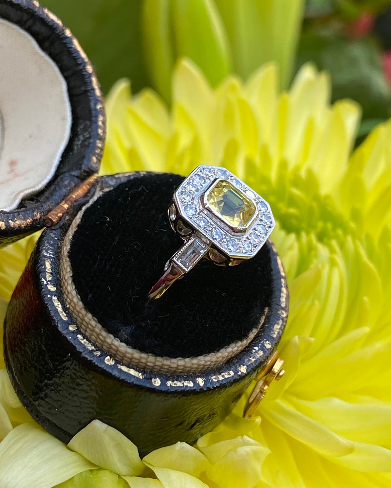 Art Deco Yellow Sapphire and Diamond Cluster Ring Platinum 0.30ct + 1.20ct