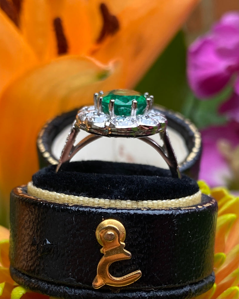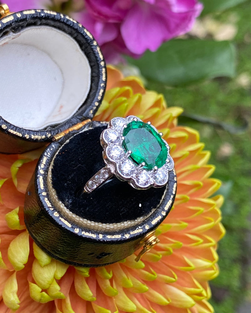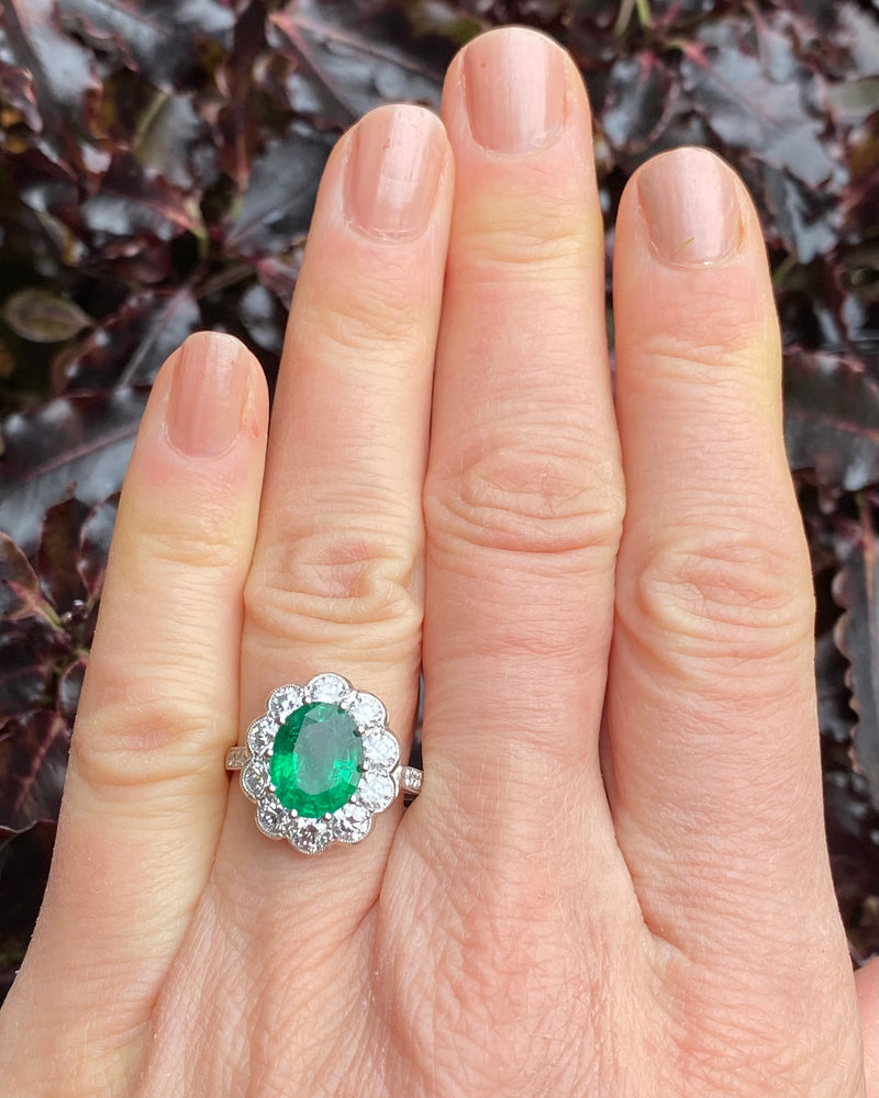 Emerald and Diamond Cluster Ring Platinum 1.35ct + 2.80ct