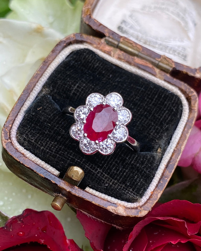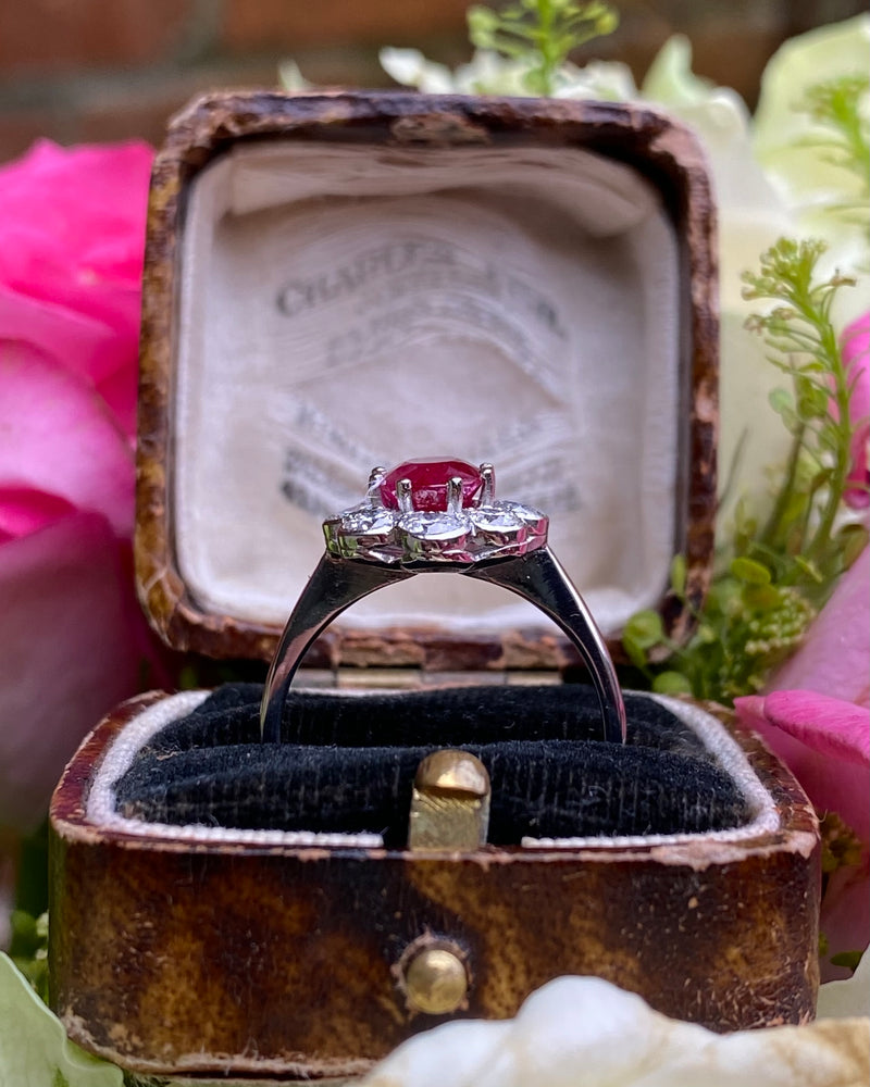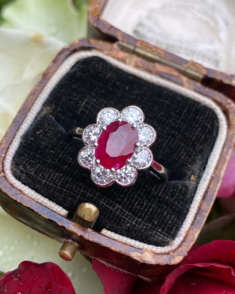 Victorian Ruby and Diamond Cluster Platinum Ring 0.90ct + 1.65ct