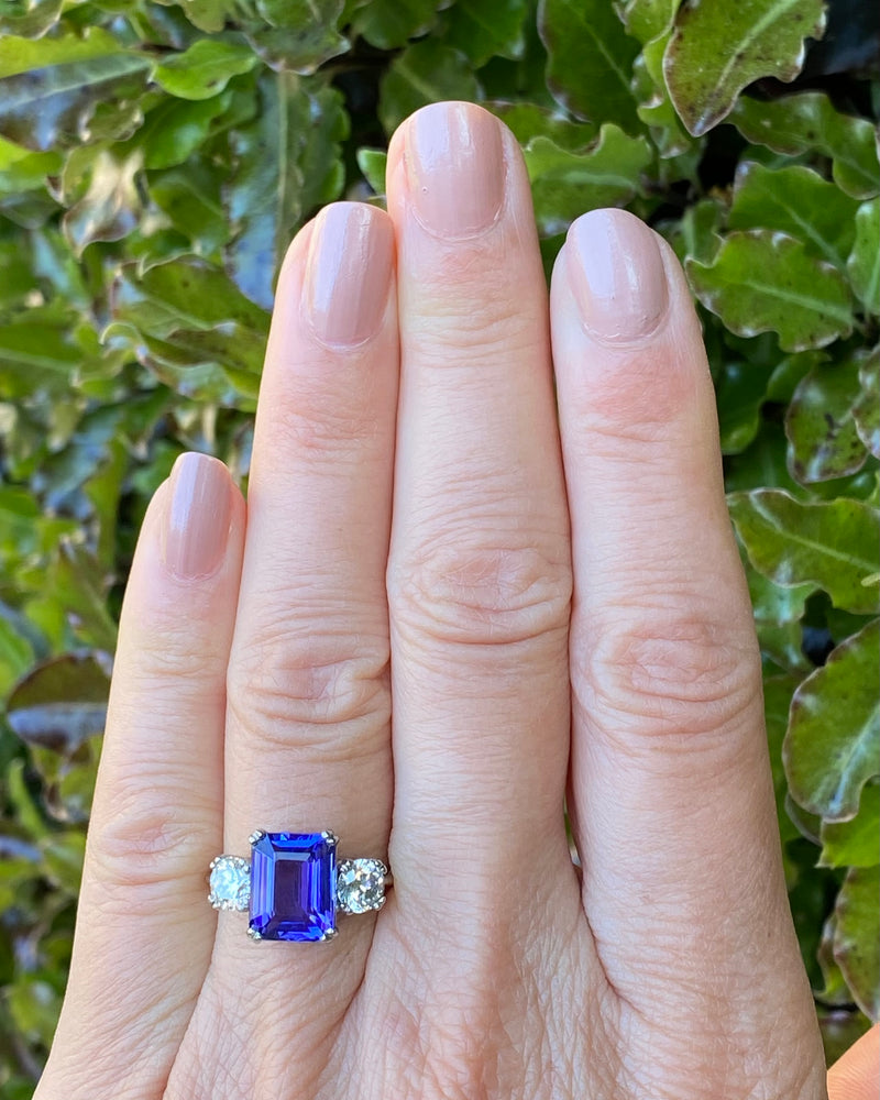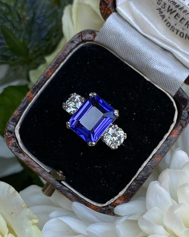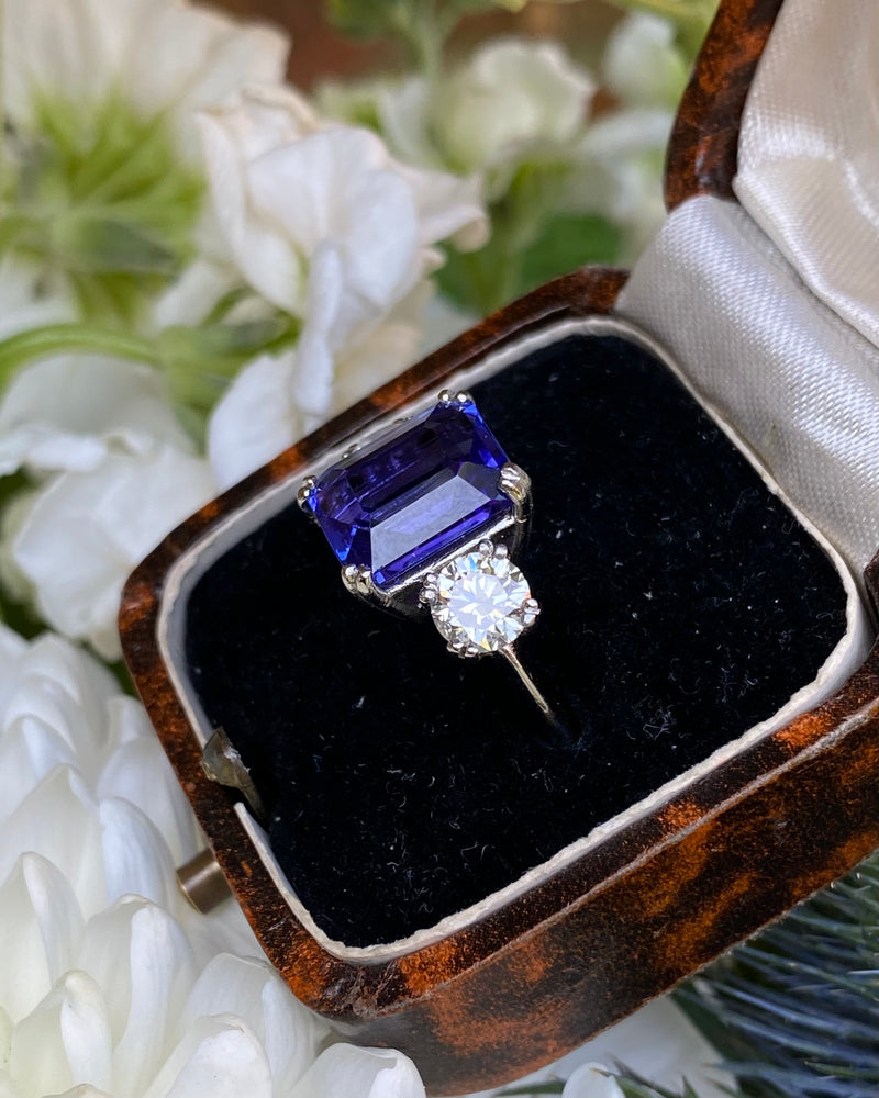 Tanzanite and Diamond Three Stone Platinum Ring 0.90ct + 3.45ct