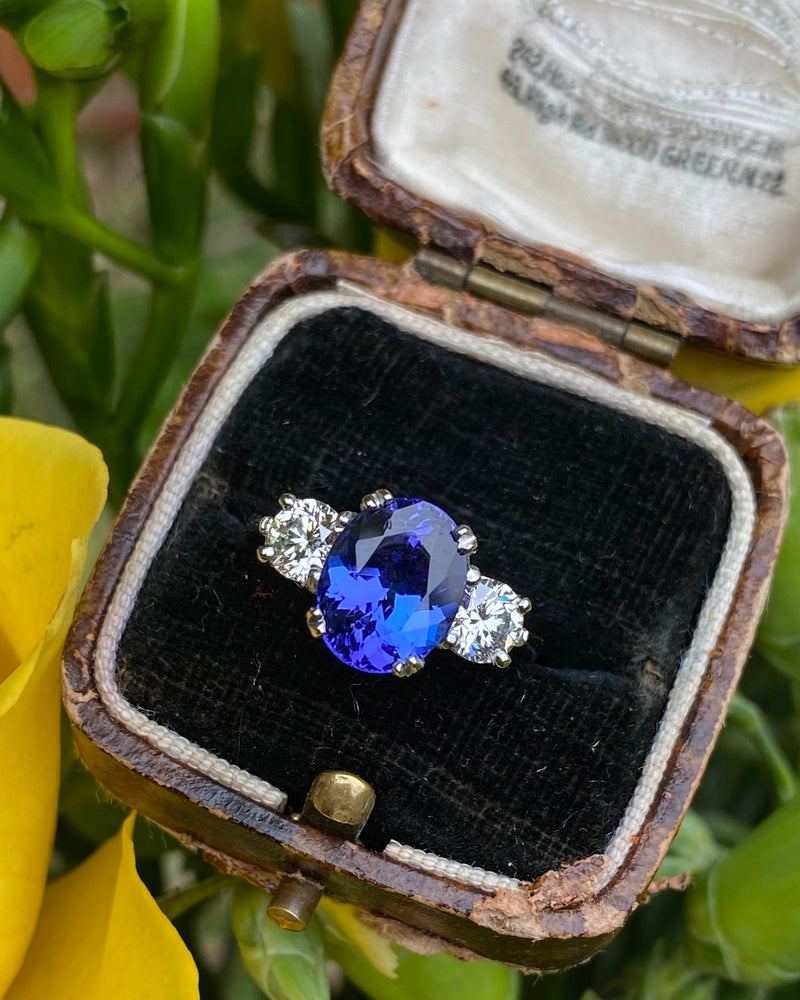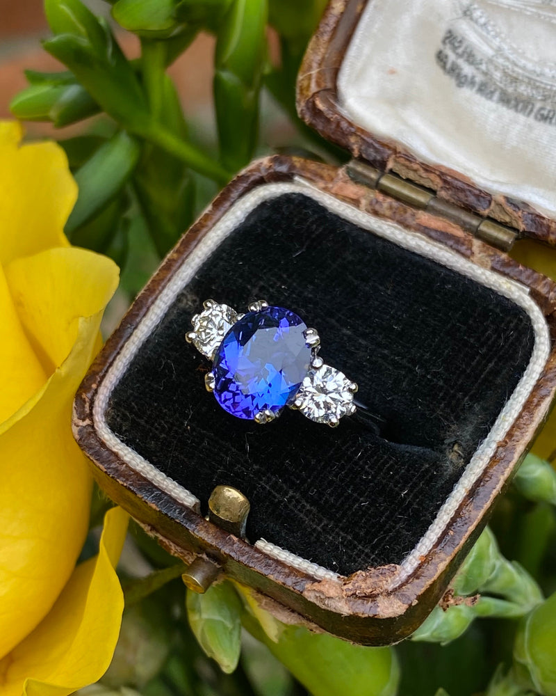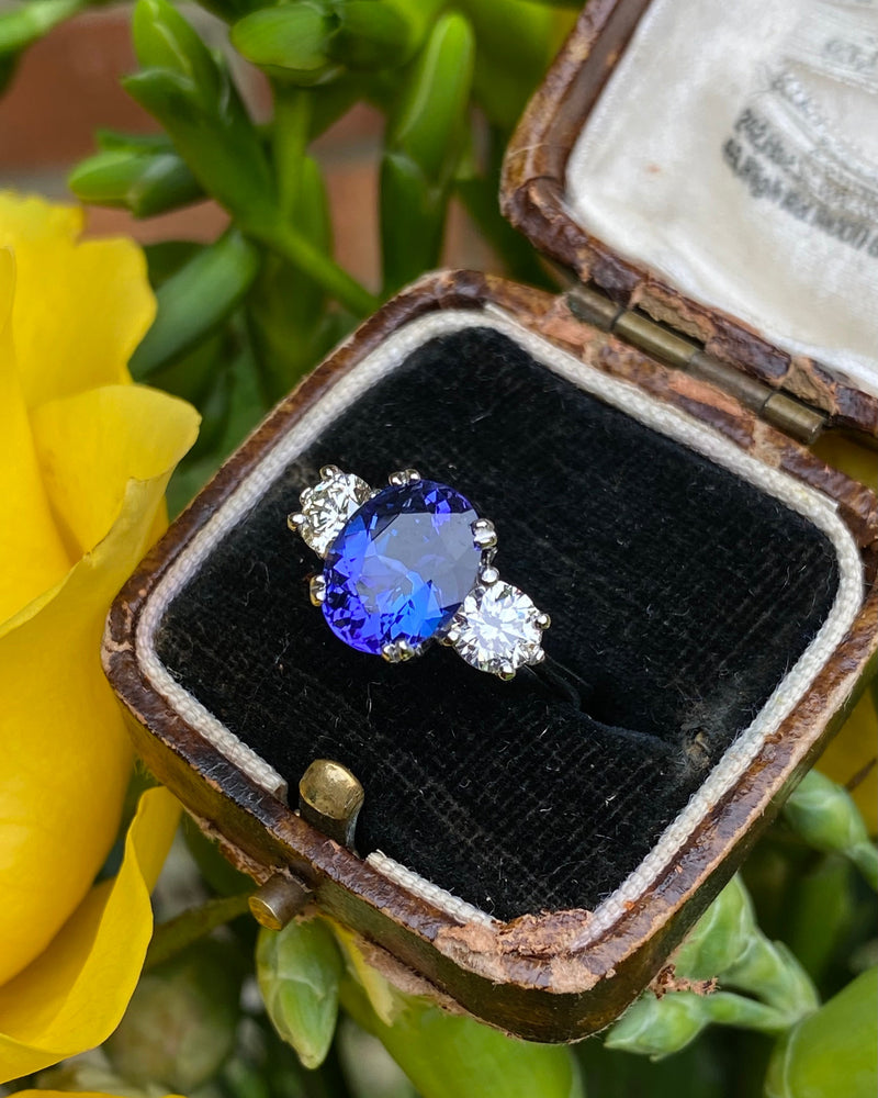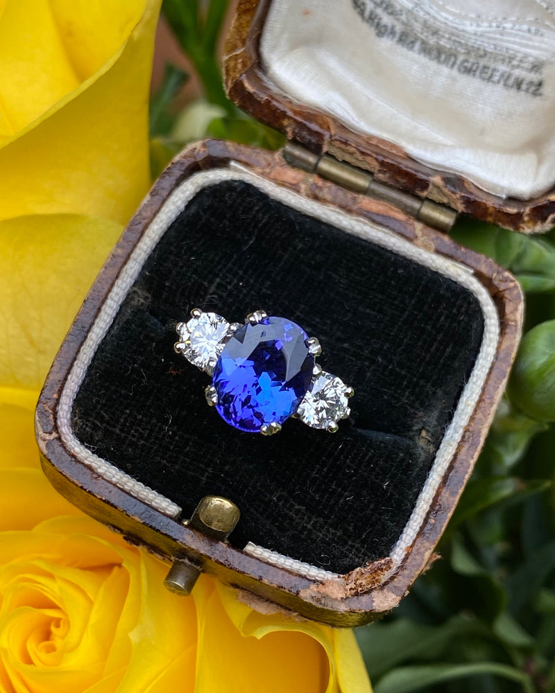 Tanzanite and Diamond Three Stone Platinum Ring 0.84ct + 3.70ct
