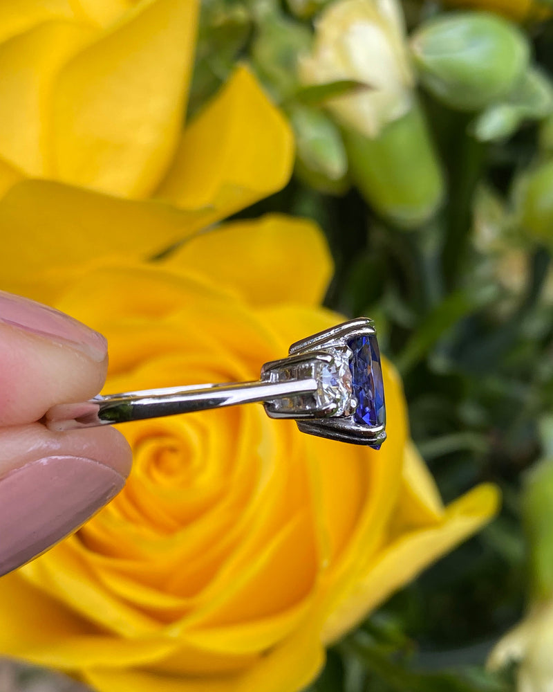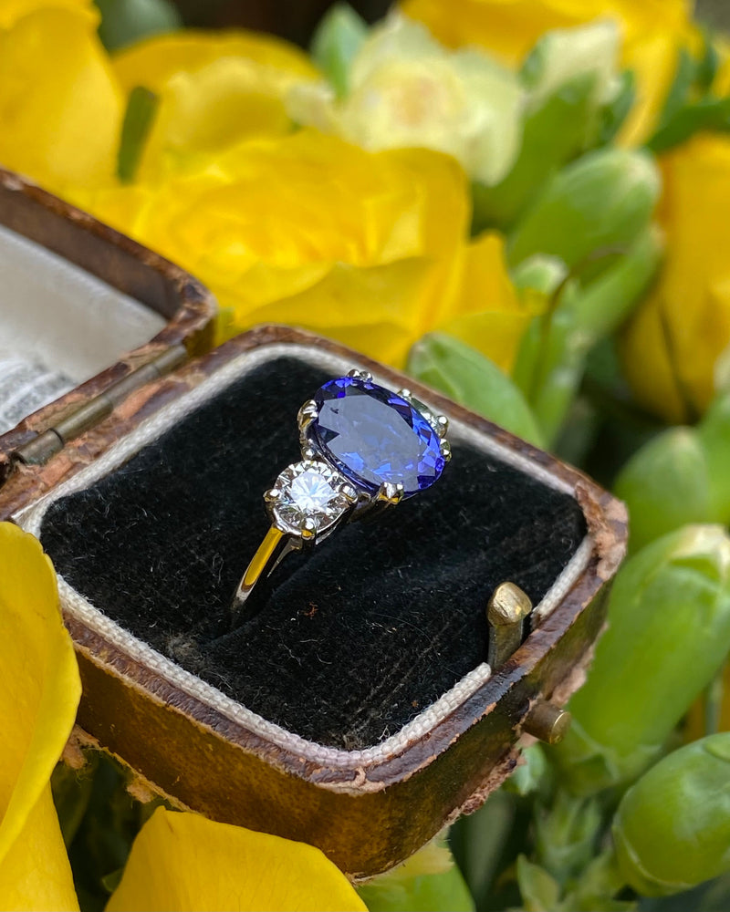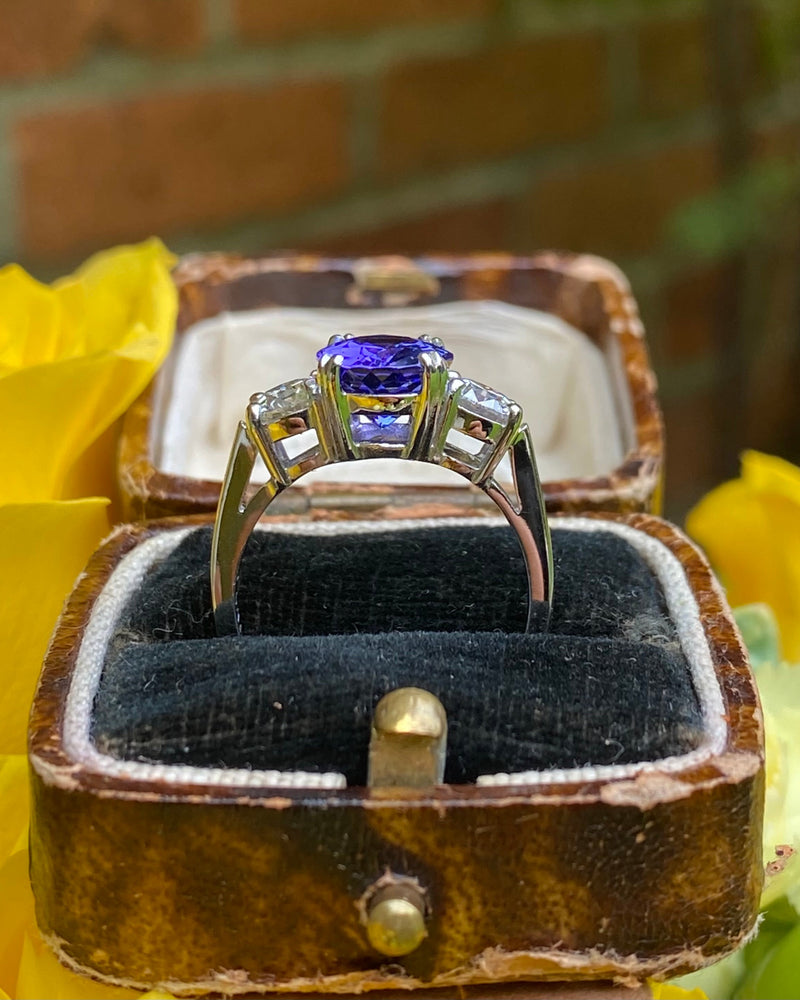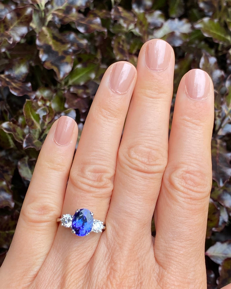 Tanzanite and Diamond Three Stone Platinum Ring 0.84ct + 3.70ct