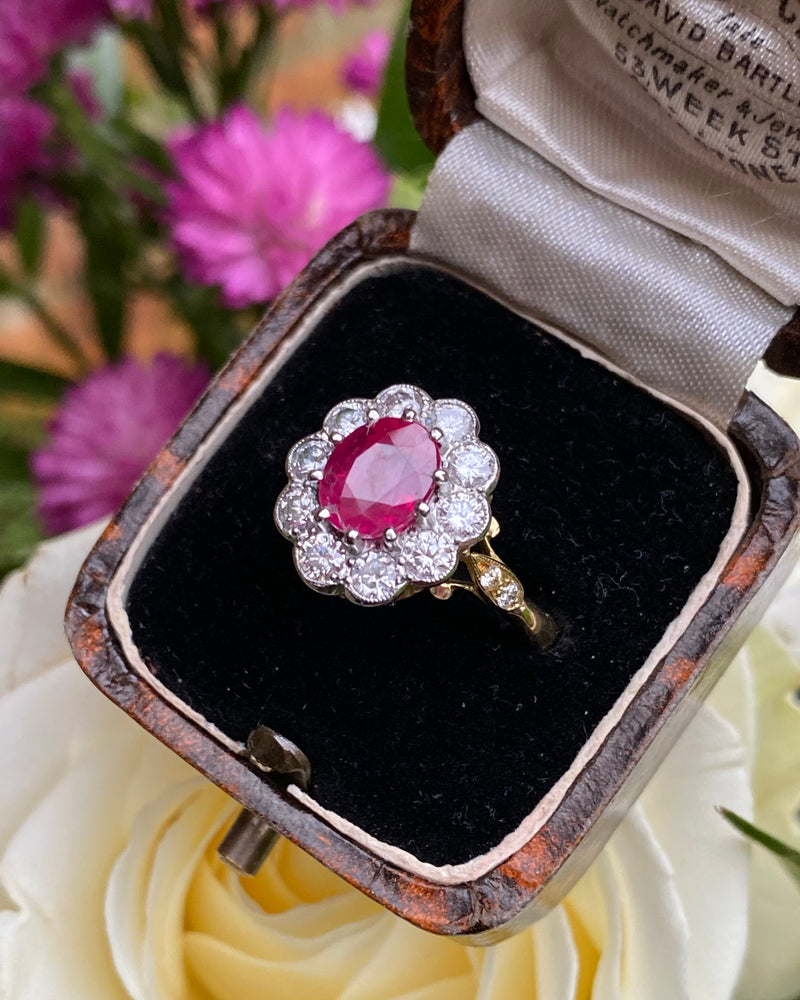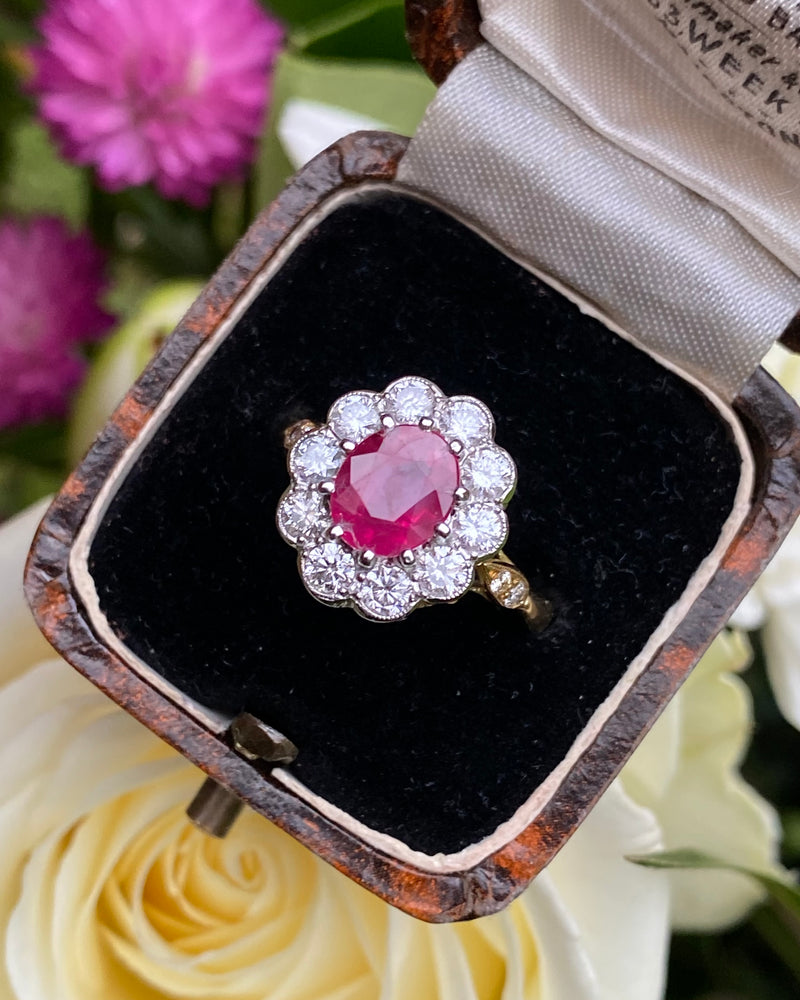 Victorian Ruby and Diamond Cluster Ring 18ct Yellow Gold 0.95ct + 1.90ct