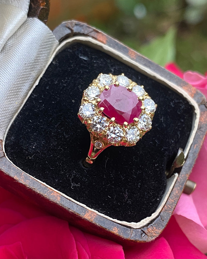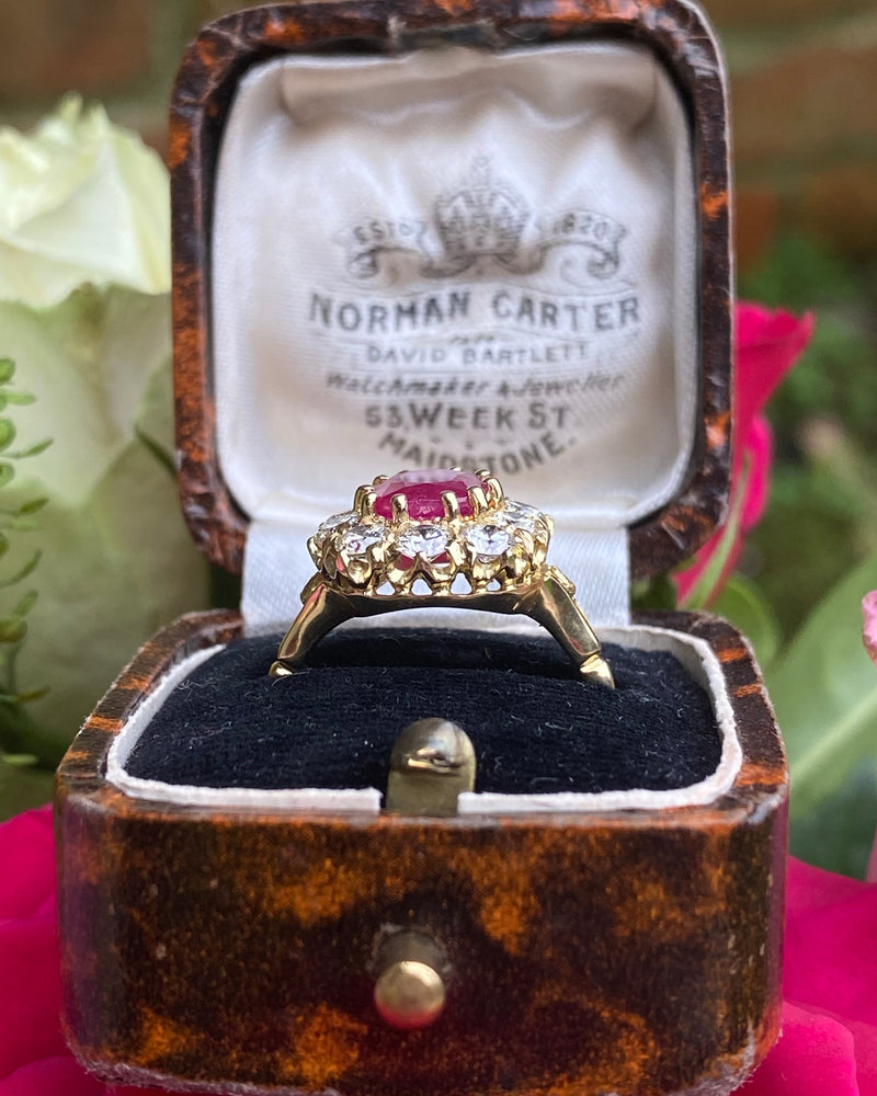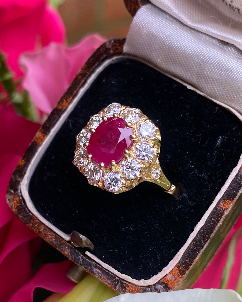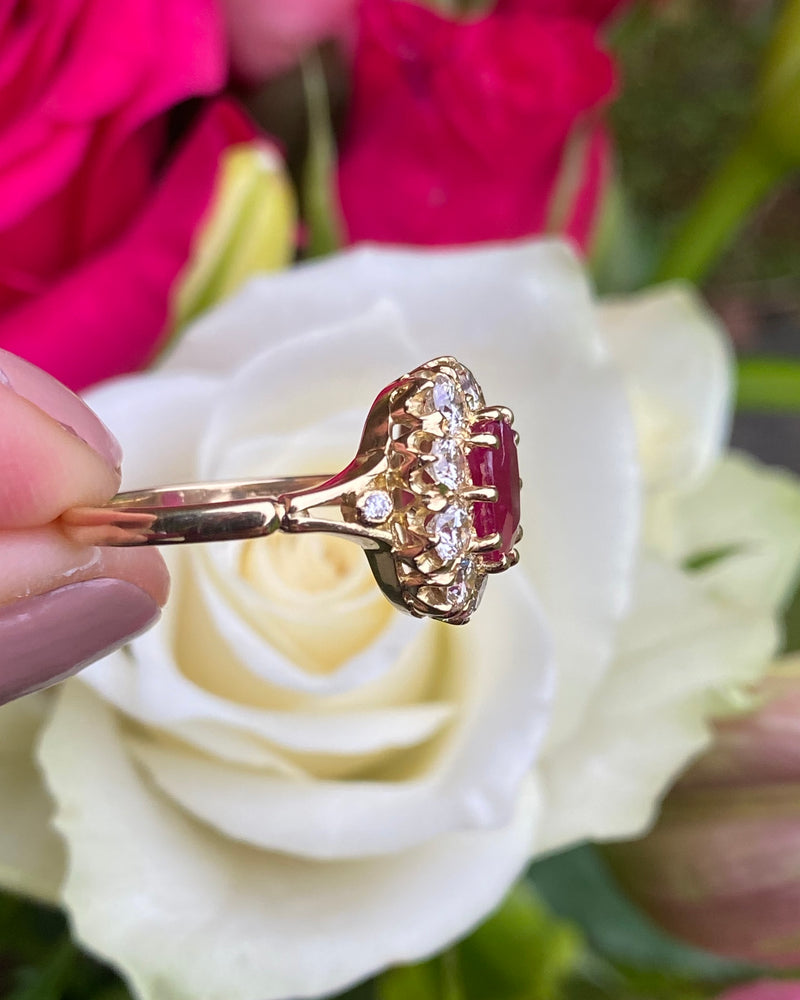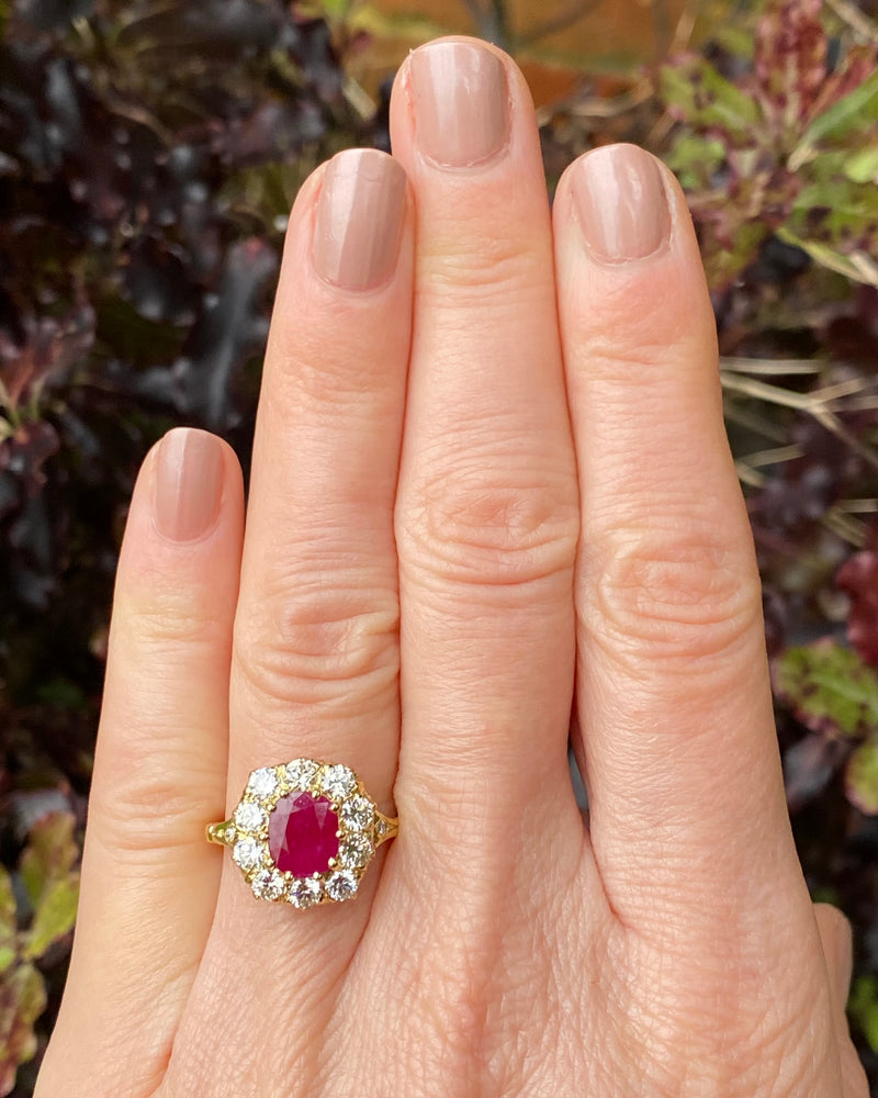 Victorian Ruby and Diamond Cluster Ring 18ct Yellow Gold 1.30ct + 1.92ct