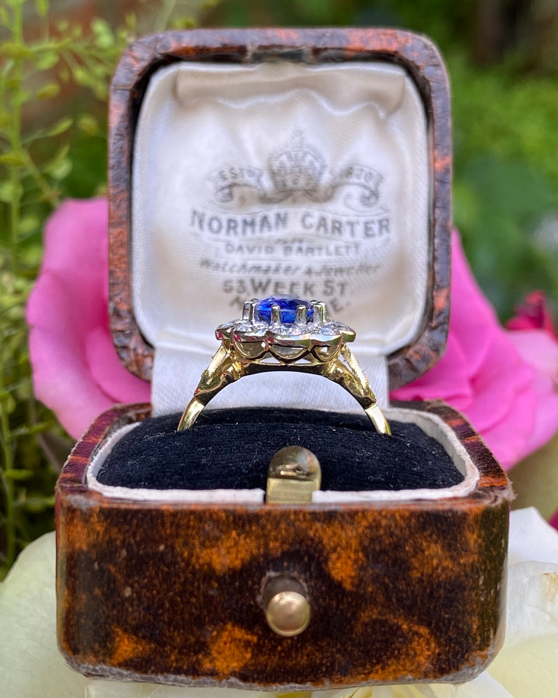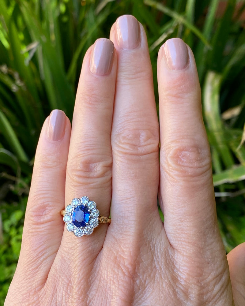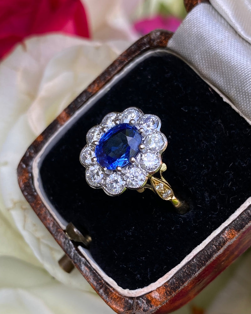 Victorian Sapphire and Diamond Cluster Ring 18ct Yellow Gold 0.95ct + 1.55ct