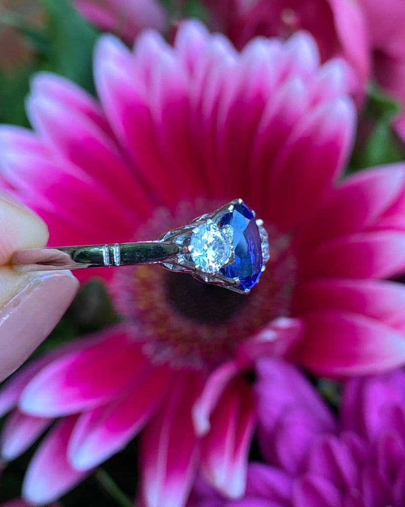 Gemstone Weight: 0.55ct Old Cut Diamonds + 1.20ct Sapphire