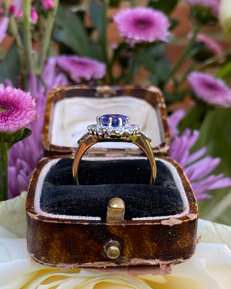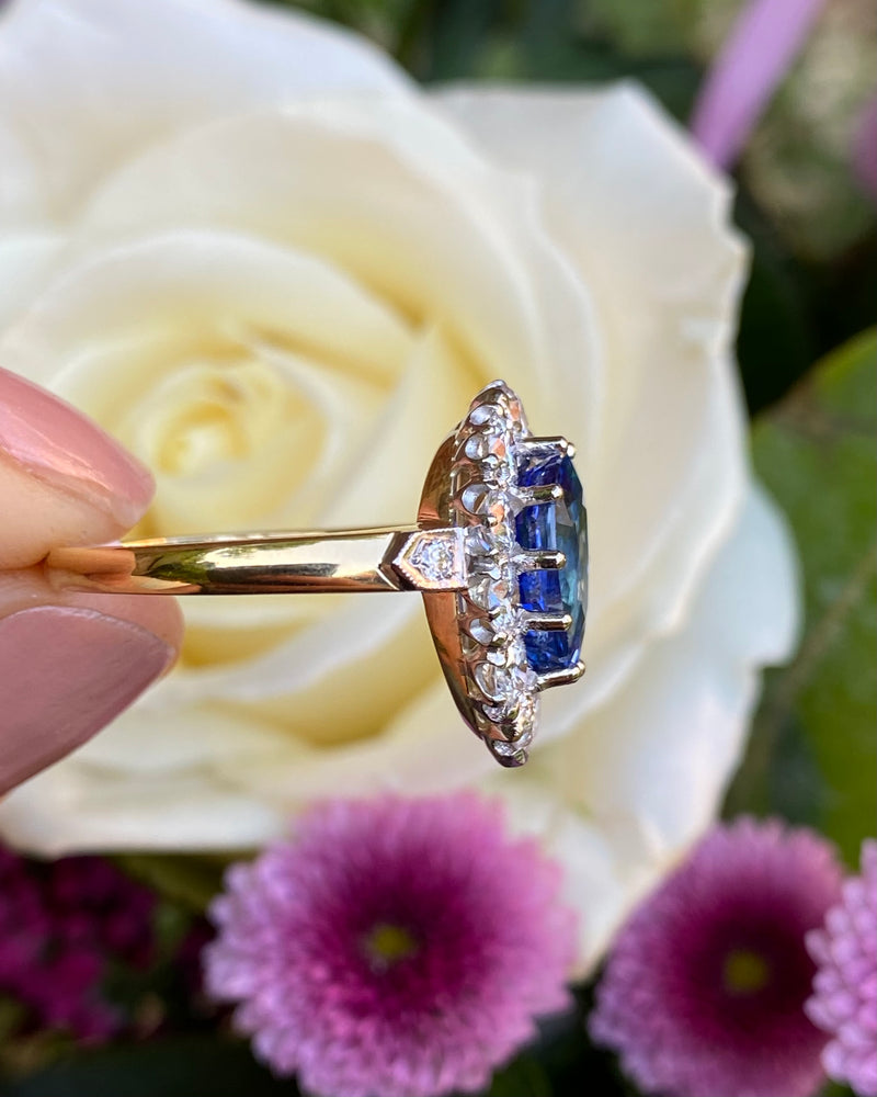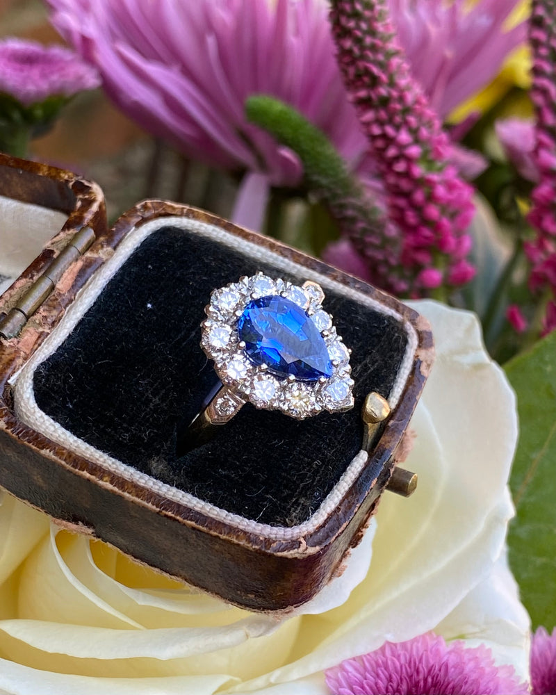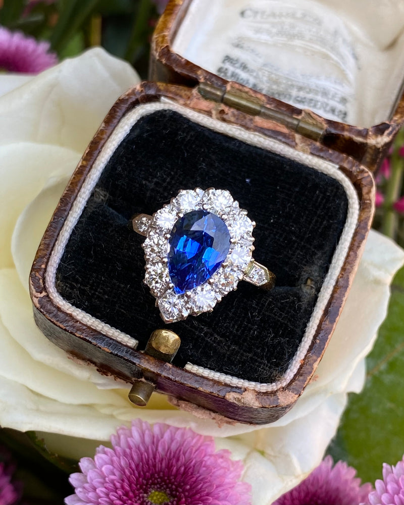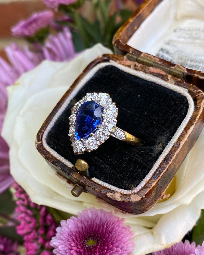 Victorian Sapphire and Diamond Pear Shaped Cluster Ring 18ct Yellow Gold 1.25ct + 2.60ct