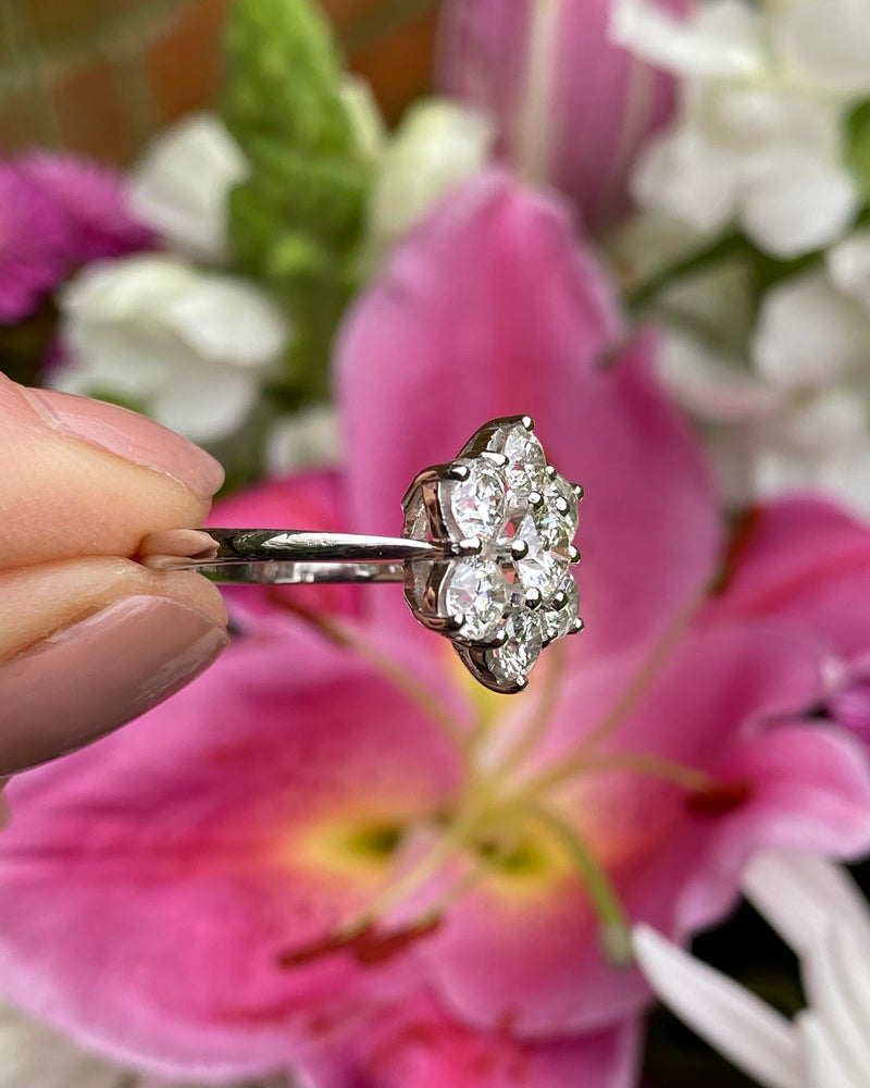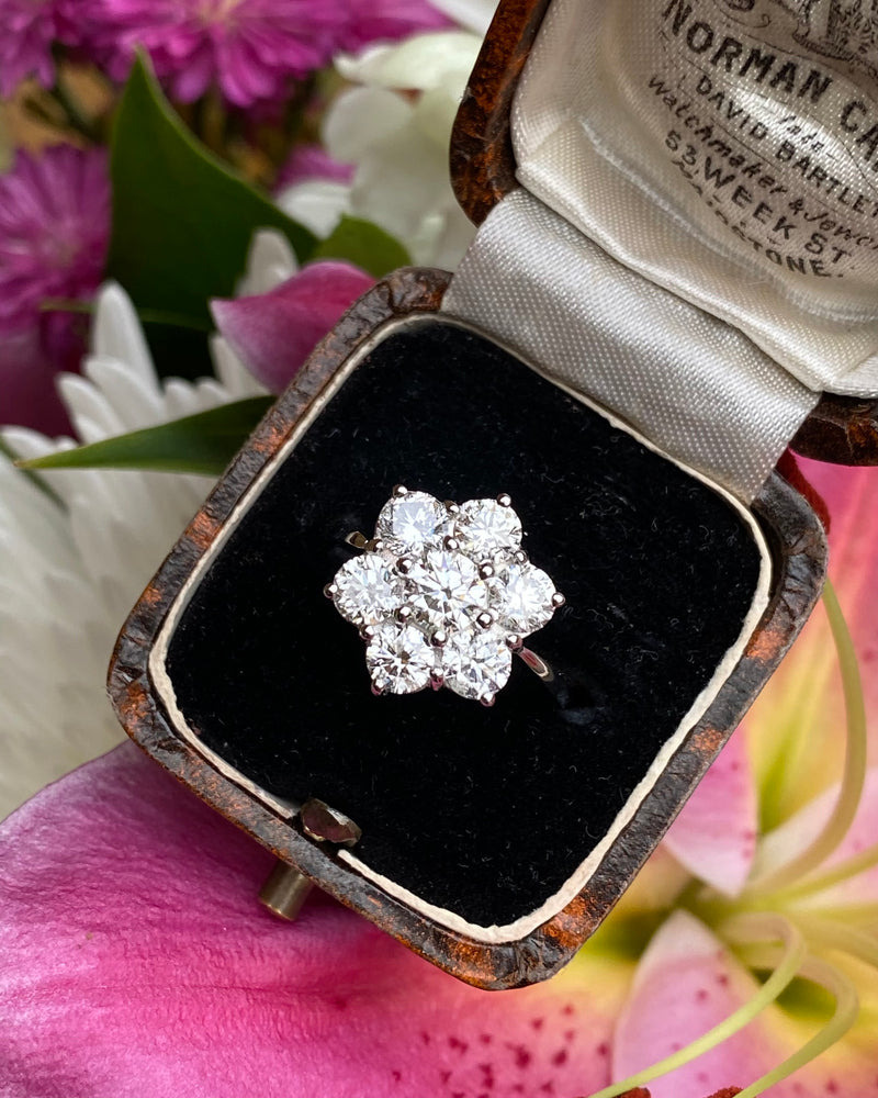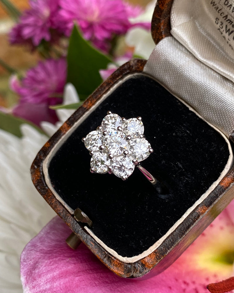 Diamond Daisy Cluster Platinum Ring 2.30ct