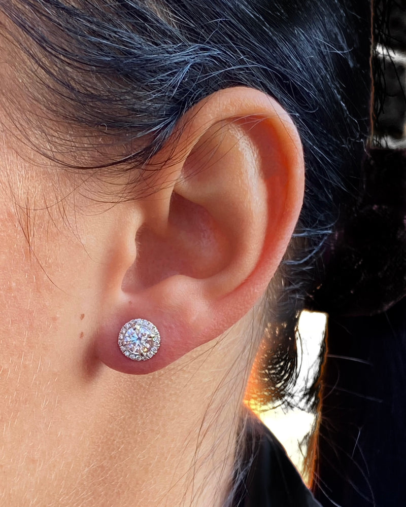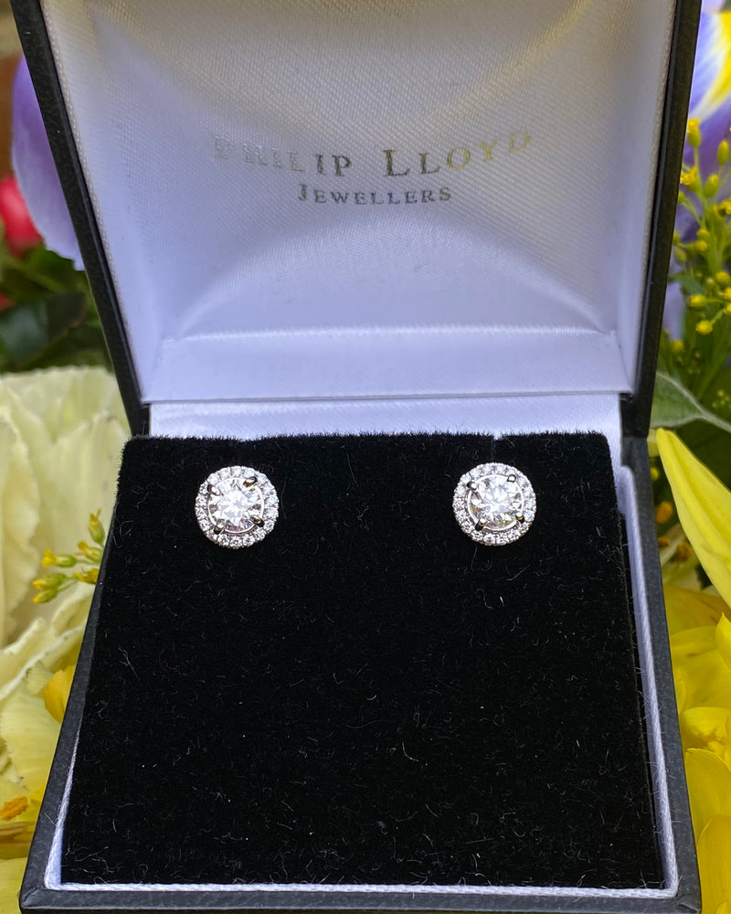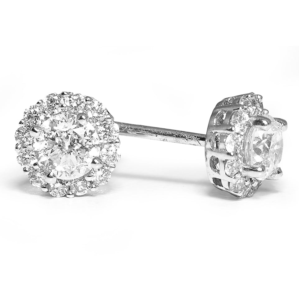 Diamond Halo Cluster Stud Earrings 18ct white gold 1.31ct