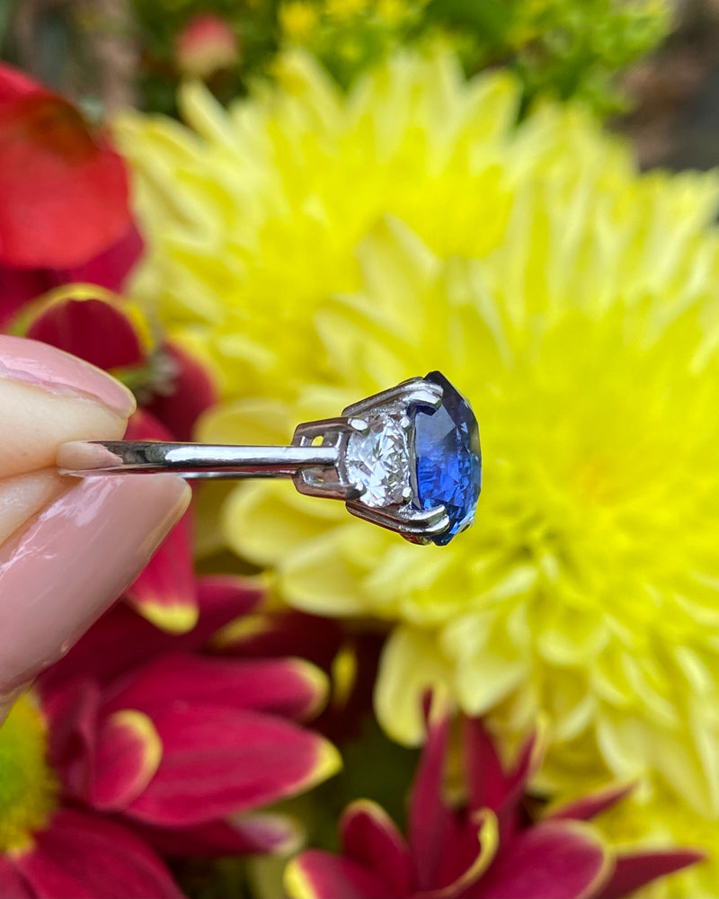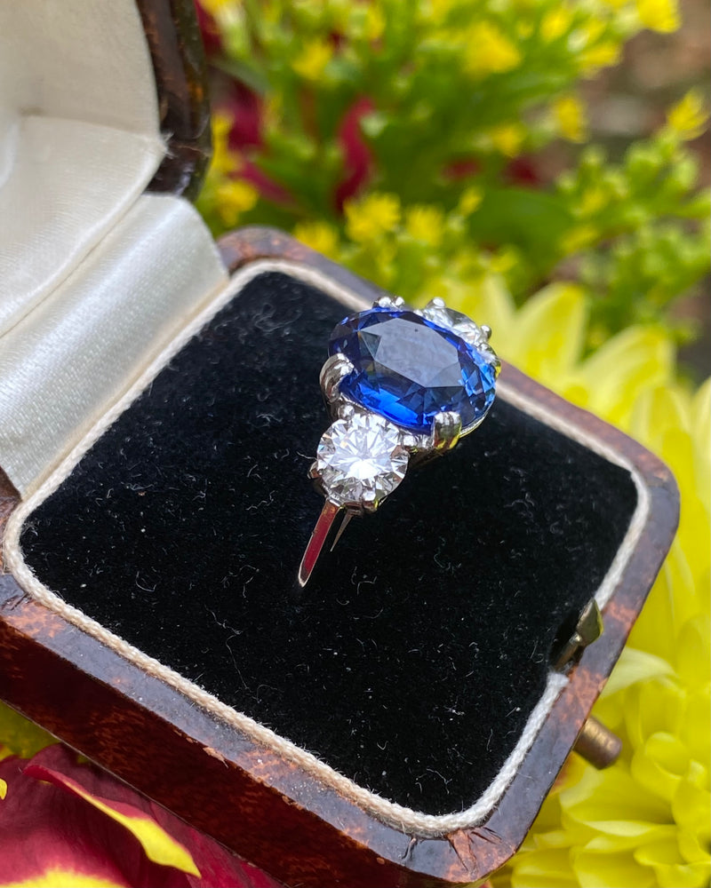 Three Stone Sapphire and Diamond Platinum Ring 1.01ct + 3.97ct