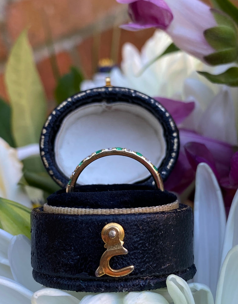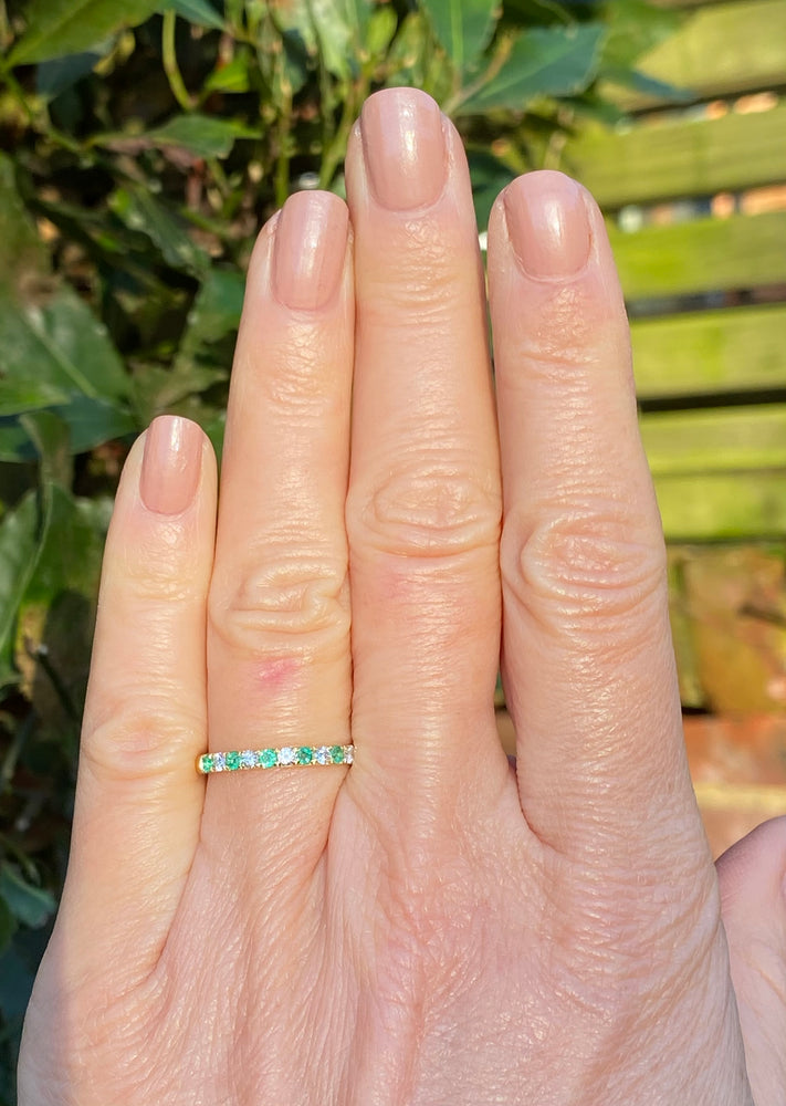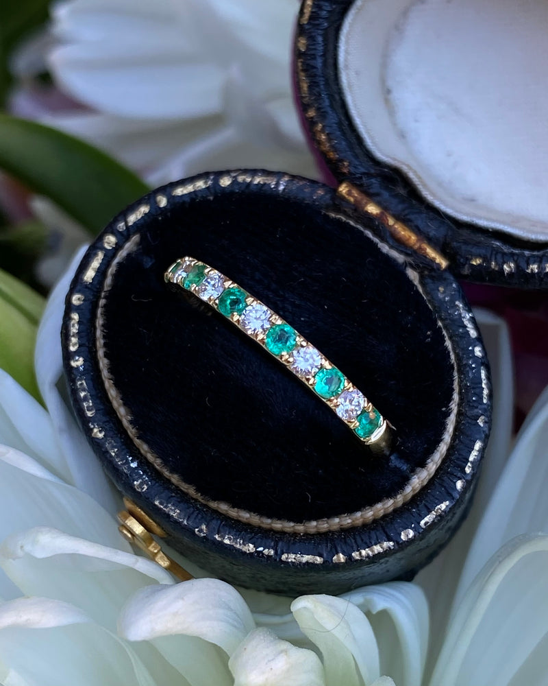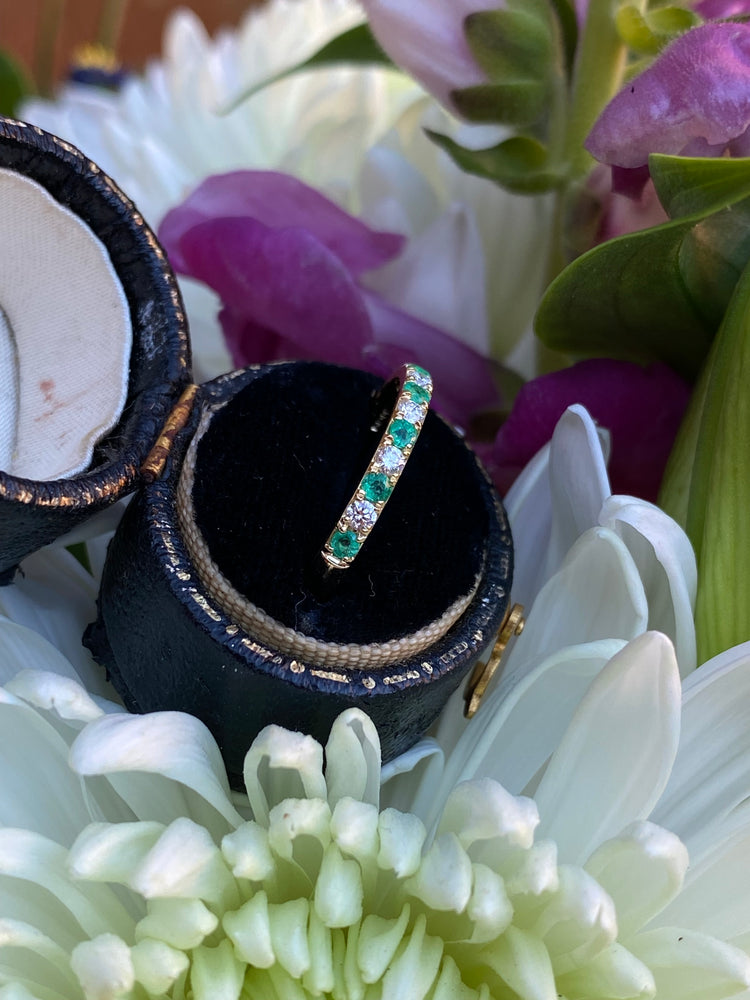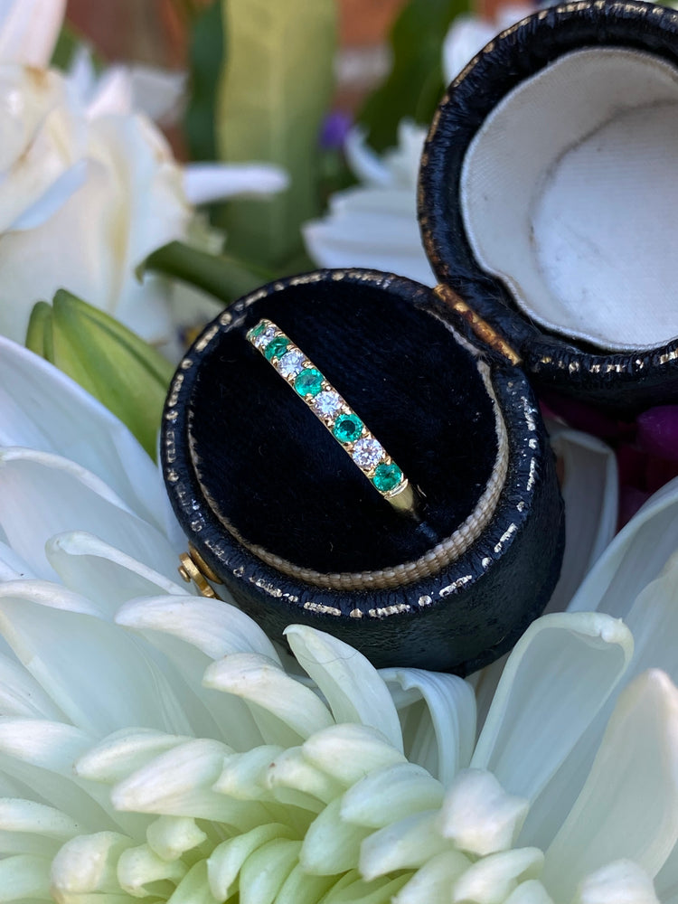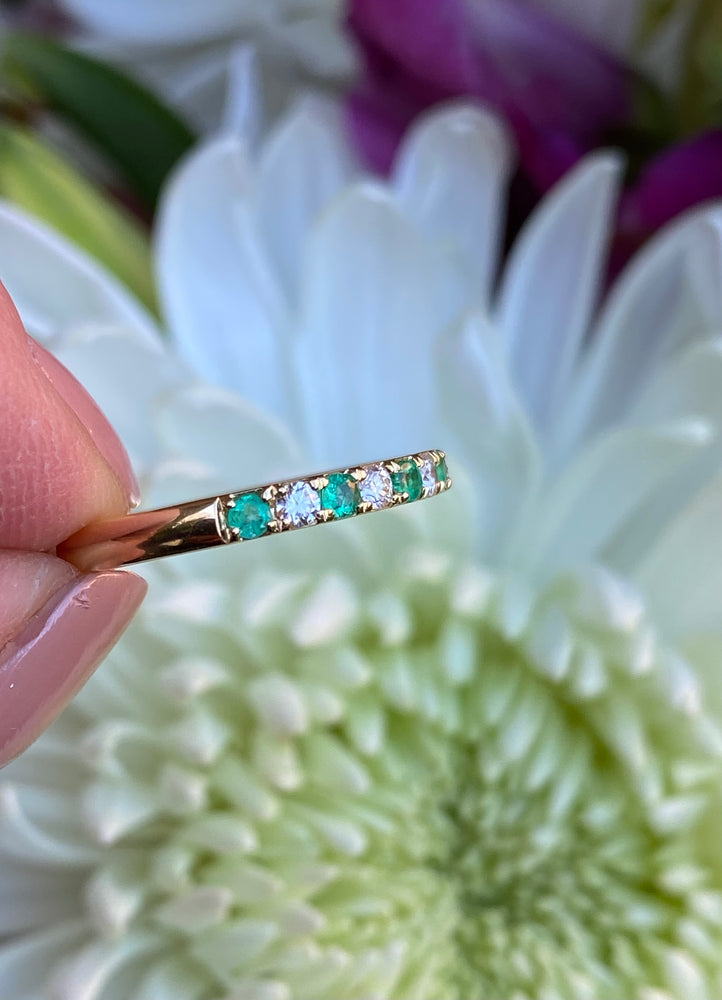 Emerald and Diamond Half Eternity Wedding Ring 0.17ct + 0.19ct 18ct Yellow Gold