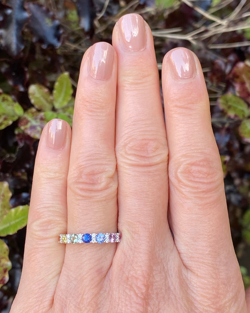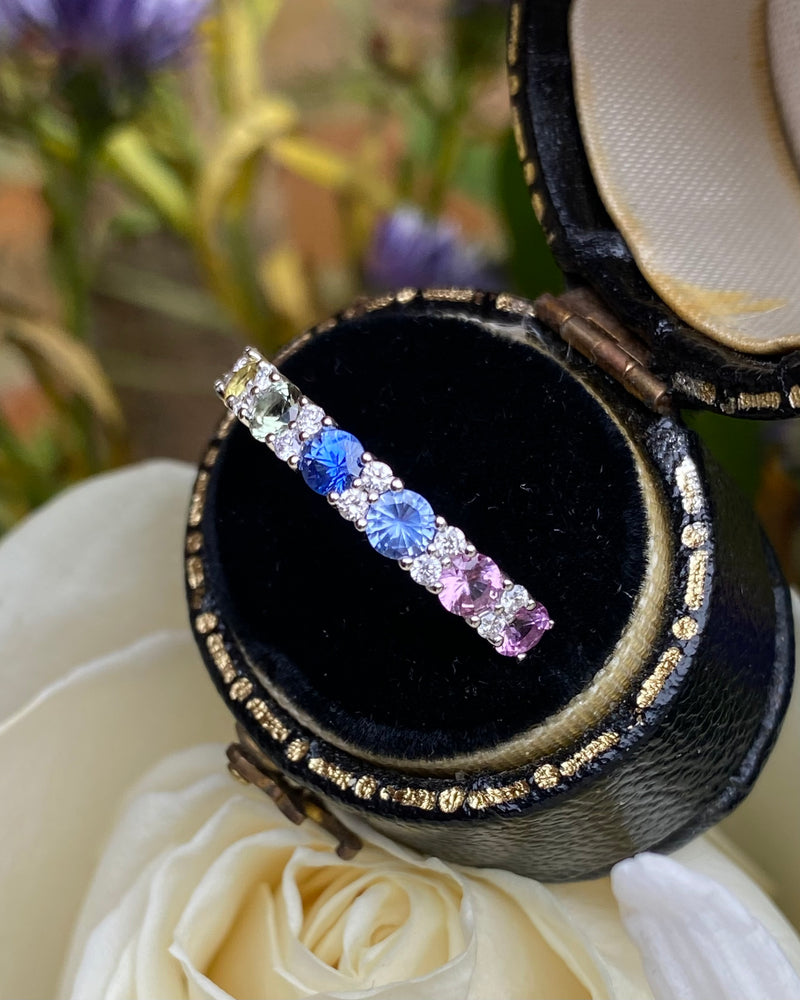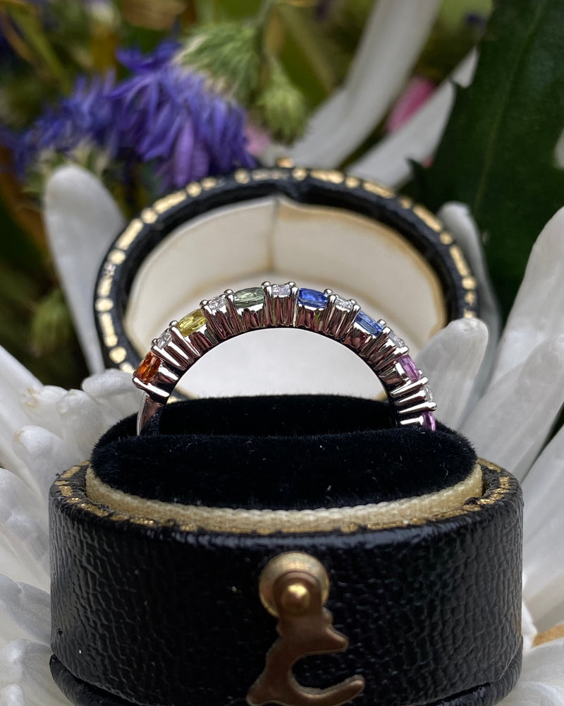 Multi-Coloured Sapphire and Diamond Rainbow Half Eternity Ring 18ct White Gold 0.14ct + 1.08ct