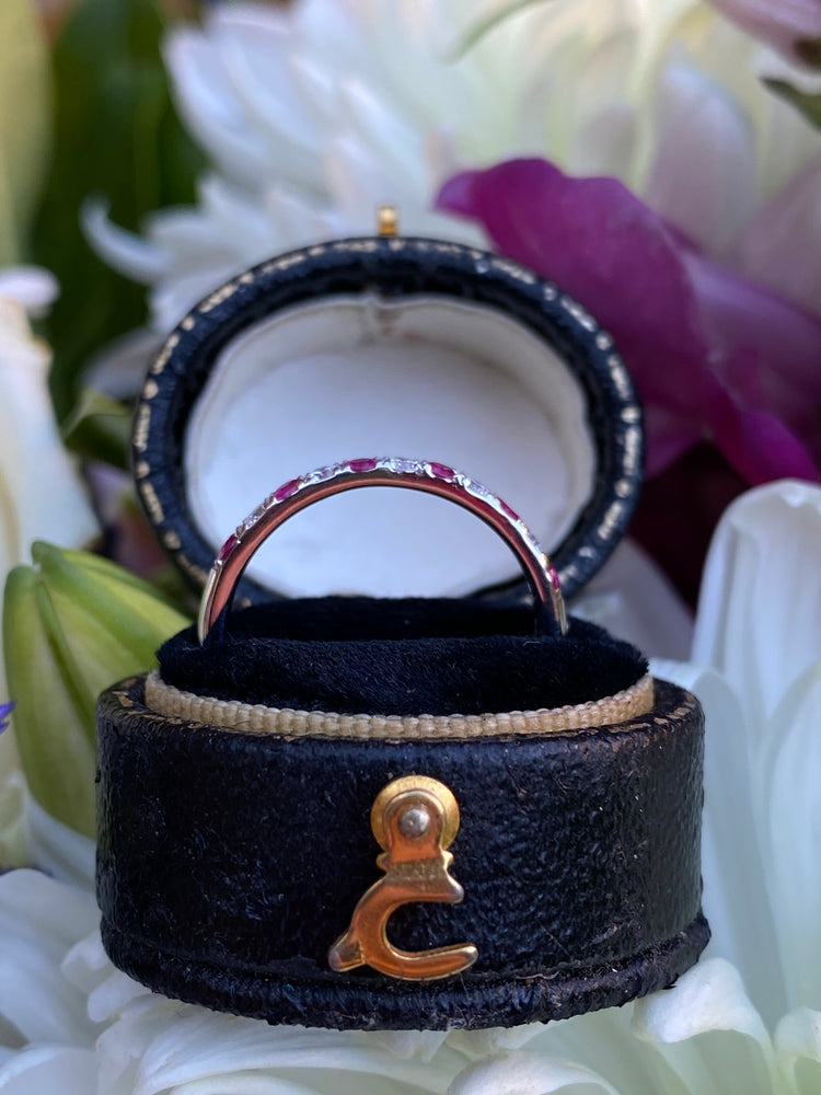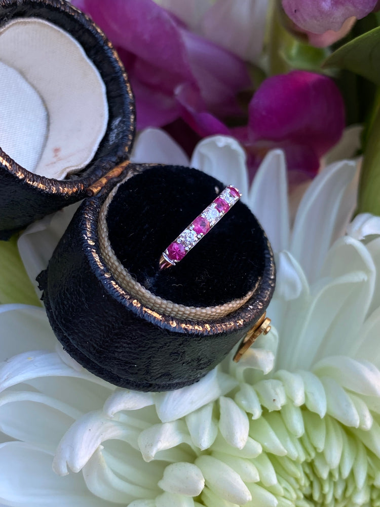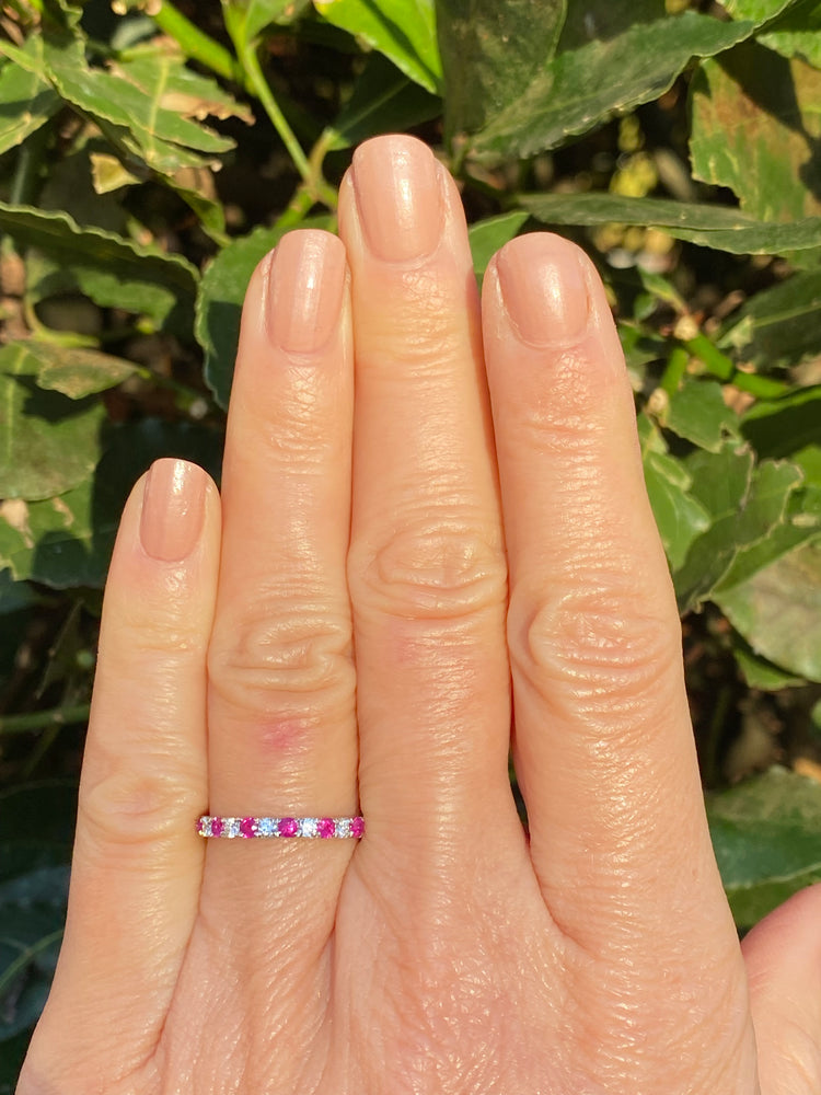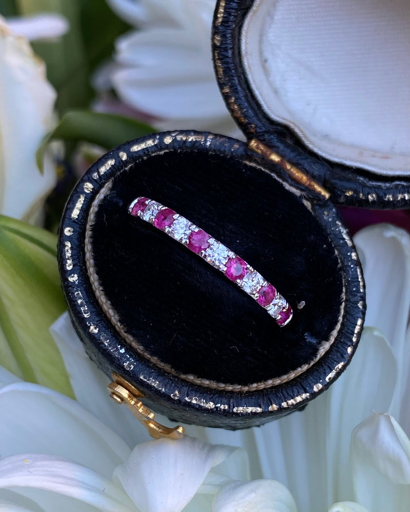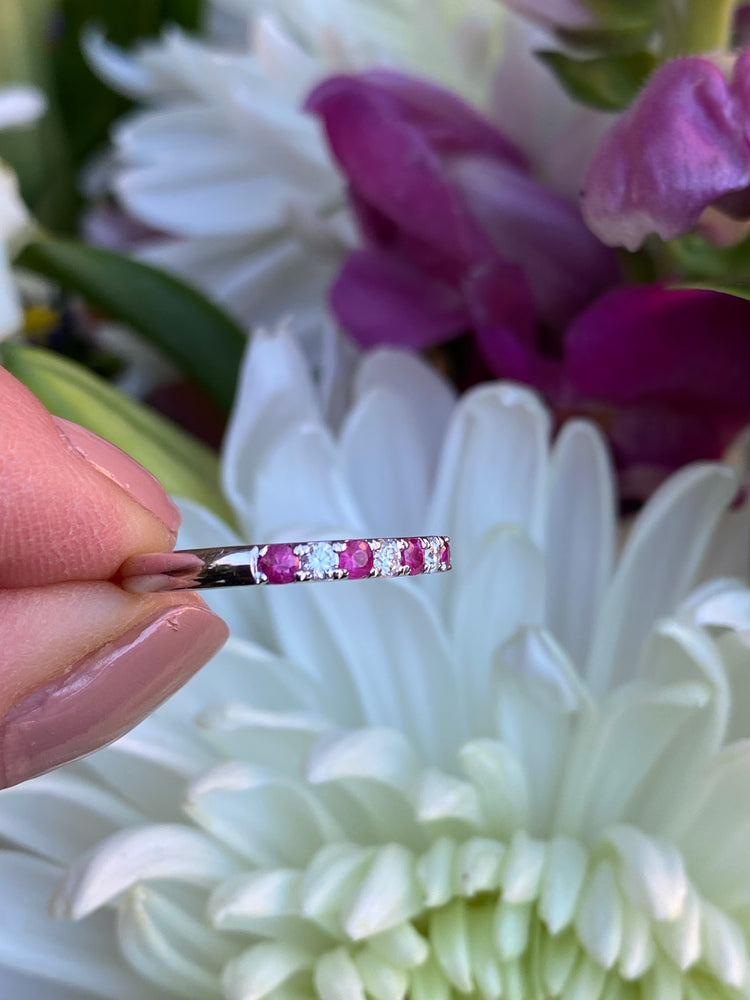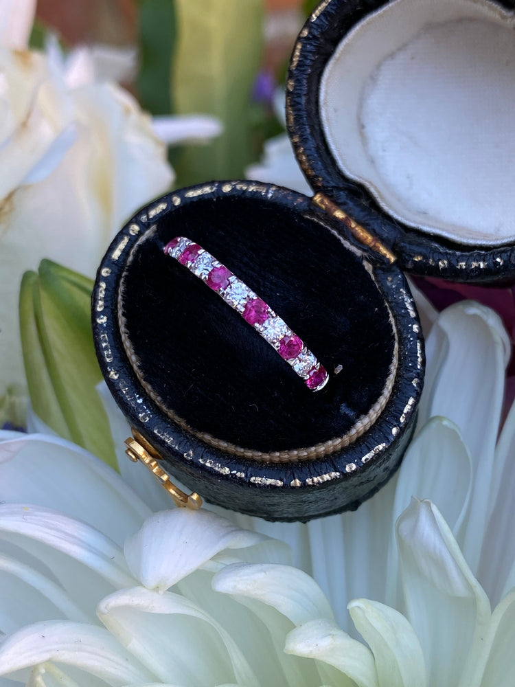 Ruby and Diamond Half Eternity Wedding Ring 18ct White Gold 0.17ct + 0.30ct