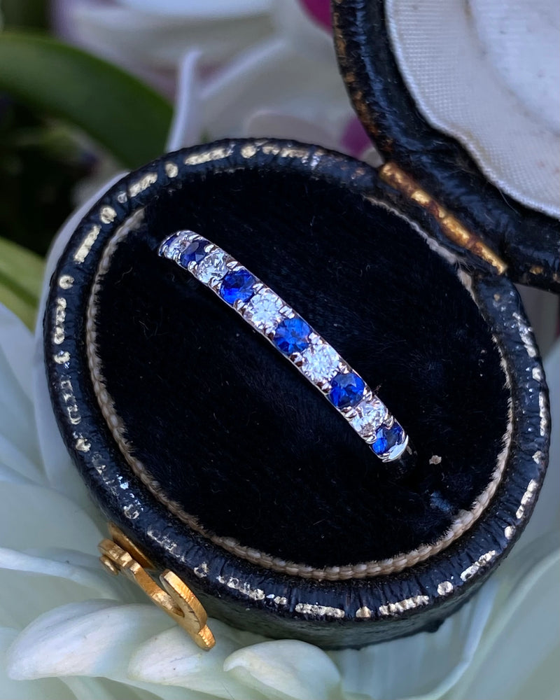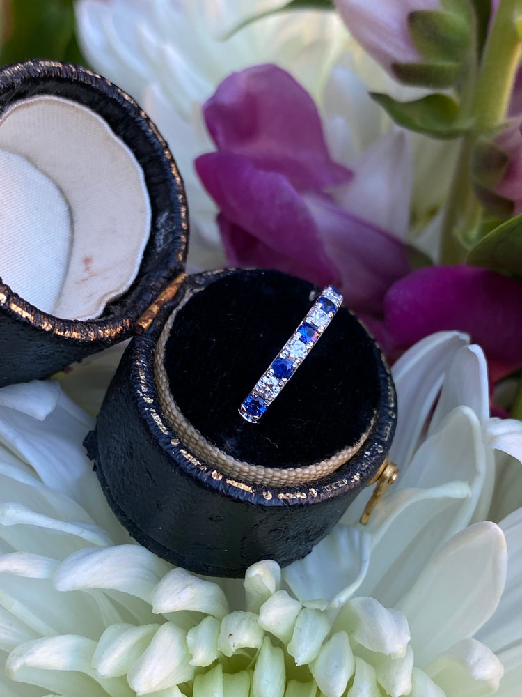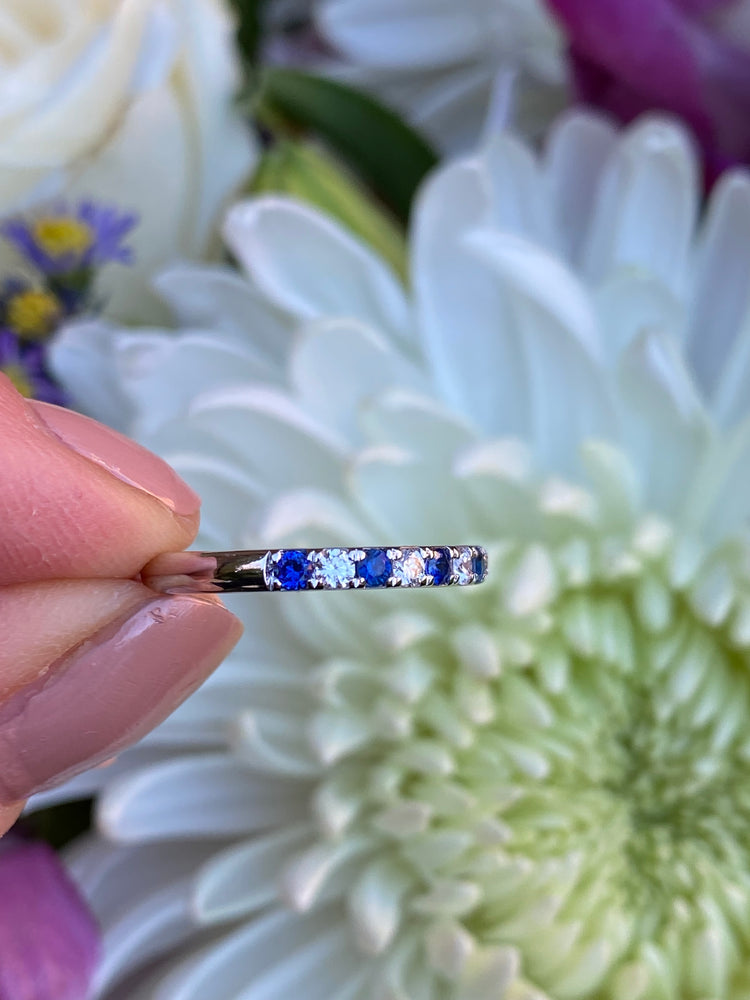Sapphire and Diamond Half Eternity Wedding Ring 18ct White Gold 0.17ct + 0.28ct