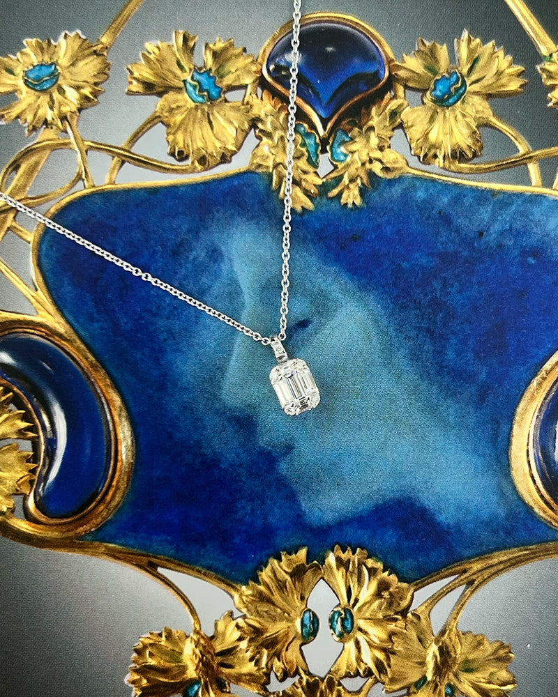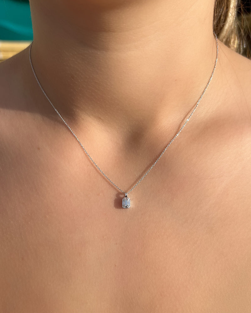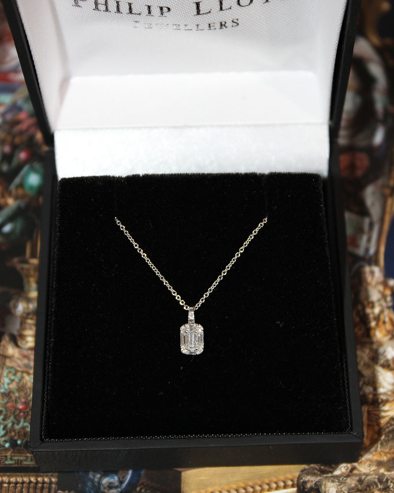 18ct White Gold Baguette Cut Diamond Cluster Pendant 0.23ct