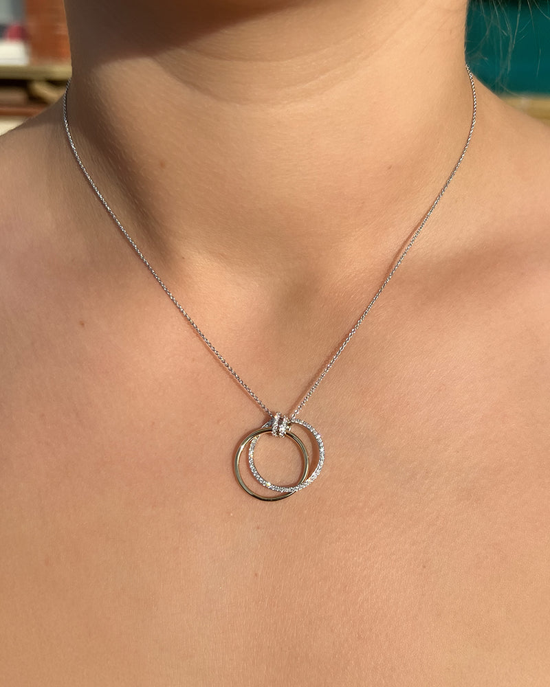 Diamond Double Hoop Pendant 18ct White Gold 0.26ct
